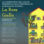 ACQUAVIVA PICENA – Sabato 15 luglio all’interno della Fortezza medievale di Acquaviva Picena, la “Compagnia del colle” ha messo in scena “La rosa gialla”, commedia di equivoci, umorismo, doppi sensi, sorprese, tutto condito con la bravura degli attori. La “Compagnia del colle”, reduce di tanti successi e detentrice di premi, ha ottenuto anche questa volta un grande successo e i complimenti dei presenti. La storia narra di una signora, Amanda, la quale ha avuto un bambino “clandestinamente” senza mai rivelare chi fosse il padre; estenuata dai continui pettegolezzi e mormorazioni delle colleghe, Amanda decide di vendicarsi e racconta che il padre di suo figlio è uno dei mariti delle sue colleghe. Inizia così una tensione comica, un simpatico thriller dove a suon colpi di scena e battute ironiche si da il via alla “caccia al traditore”. Vengono fuori le eccentricità dei protagonisti. Si ringrazia il Comune di Acquaviva Picena per il Patrocinio e gli sponsor. Regista della rappresentazione: Roberto Polini, assistenti alla regia: Paola Polini e Tina Buffone. Interpreti: Catia Gambetta, Antonella Lanciotti, Loriana Ricci, Germana Spina, Giovanni Olivieri, Luciano Gaetani, Rodolfo Scarponi, Alessandro Acciarri.