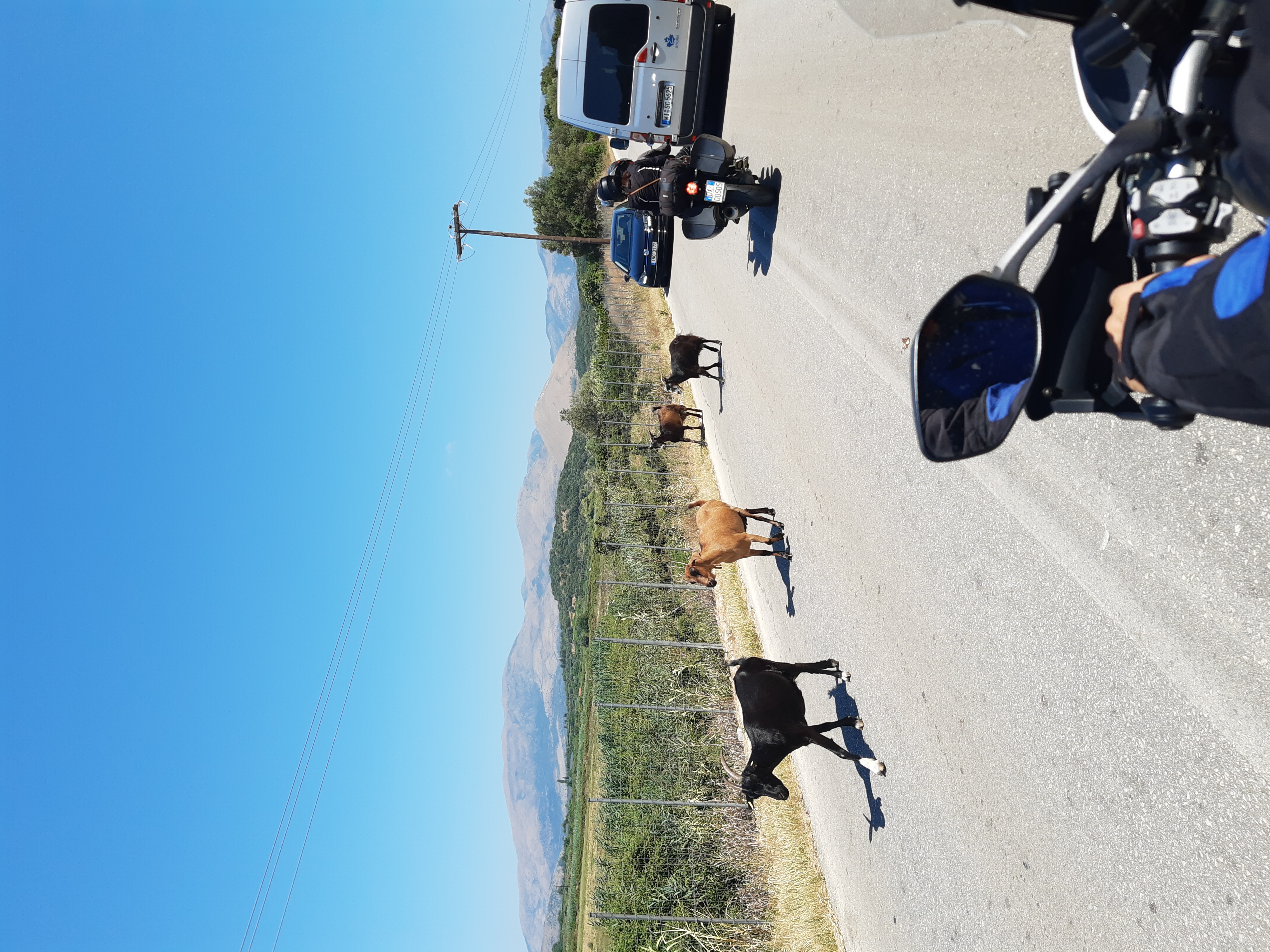 Tra i tanti viaggiatori ci siamo anche, io, mio marito Nicola e una coppia di amici, Fabrizia e Michele. Michele è l’ideatore nonché l’organizzatore impeccabile della “spedizione”. Abbiamo scelto di viaggiare con le moto, imbarcate su un ferryboat, che naviga tra Ancona e la greca Igoumenitza. Appena scesi, abbiamo presso la direzione dell’Albania. In questo tratto, il paesaggio si rivela ricco di uliveti, luminoso e scarsamente popolato. Non di rado s’incontrano ai margini della strada -ed a volte anche in mezzo alla carreggiata – greggi di capre al pascolo. Al di là di questi incontri imprevisti, la strada è libera dal traffico e ci permette di viaggiare sereni.