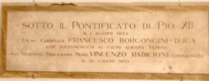 La Chiesa, progettata dall’architetto Tassotti e realizzata in cemento armato – opera avveniristica per gli anni 50 –  fu fortemente voluta da don Giuseppe De Semplicis, parroco zelante tra gli emigrati a New York. Caldeggiata da don Filippo Giovannozzi, che purtroppo non ne godé il compimento, fu portata a termine dal suo successore don Ruggero Micioni e dal loro vice don Pacifico Forlini. Il 26 luglio 1953 la Chiesa fu consacrata ad opera di S.E.R. Mons. Vincenzo Radicioni.