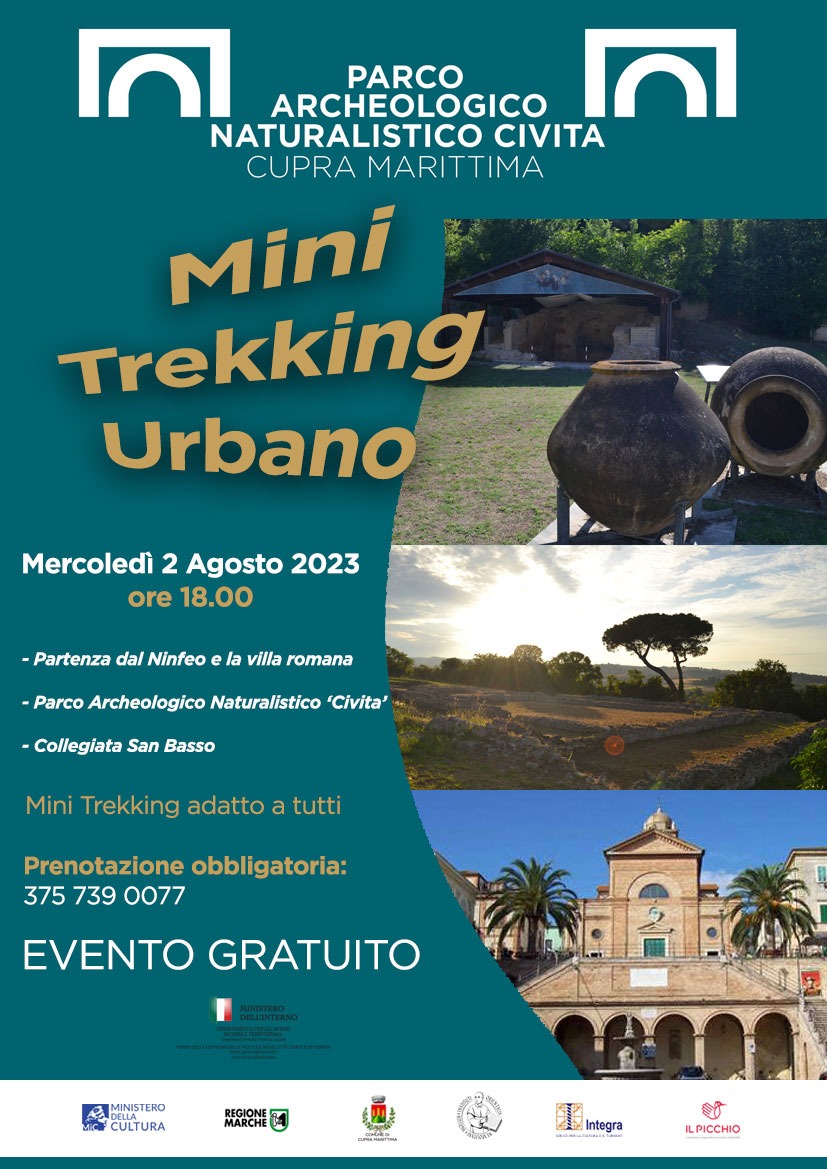 CUPRA MARITTIMA – Nell’ambito della valorizzazione del Parco Archeologico Naturalistico ‘Civita’ di Cupra Marittima, si propone un Mini Trekking Urbano alla scoperta di Cupra Archeologica e Sacra mercoledì 2 agosto 2023 alle ore 18.00.