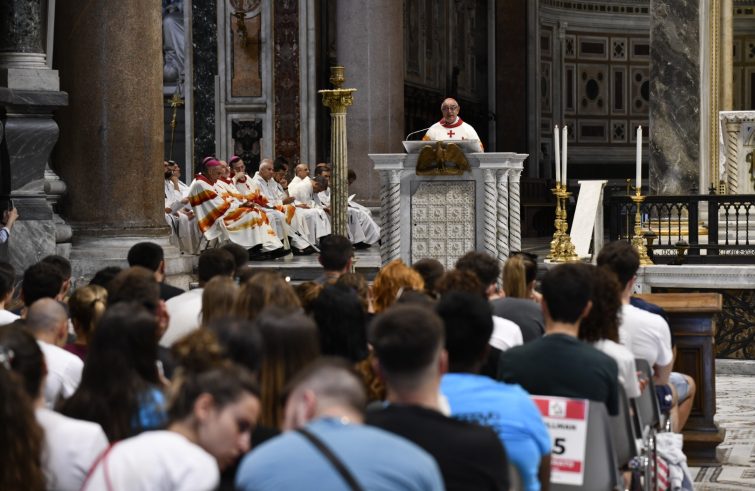 “Roma aspetta la vostra gioia e la vostra decisione di donare senza trattenere, di perdere tutto. Tornate per arricchire la nostra città e la nostra Chiesa della vostra autentica e limpida gratuità. Da Lisbona maturino sì definitivi, luminosi e dal vostro dono riconosceremo ancora una volta Gesù che spezza il pane per tutti”. È l’augurio rivolto questo pomeriggio dal cardinale vicario della diocesi di Roma, Angelo De Donatis, ai 600 ragazzi romani in partenza per la Giornata mondiale della gioventù di Lisbona con il programma offerto dalla Pastorale giovanile diocesana. Il porporato ha presieduto la celebrazione eucaristica nella basilica di San Giovanni in Laterano al termine della quale ha conferito il mandato ai pellegrini consegnando loro la croce del pellegrino inserita nel kit degli italiani. Il consiglio ai ragazzi è stato quello di chiedersi nella preghiera cosa si aspettano da queste giornate. “Mettete a fuoco il desiderio vero che avete nel cuore” ha detto. Zaini in spalla, accompagnati dai genitori con i quali hanno fatto fino all’ultimo istante mente locale sperando di non aver dimenticato nulla, i ragazzi hanno gremito la basilica lateranense impazienti di dare inizio a “un’esperienza di fede che non dimenticheremo per tutta la vita” afferma Emanuele. Per la maggior parte dei ragazzi si tratta della prima Gmg alla quale si sono iscritti attratti dalle testimonianze di catechisti e amici che vi hanno partecipato negli anni scorsi. Adesso è arrivato il loro turno, sono “pronti a mettersi in cammino e a compiere più di 11 chilometri rispetto ai discepoli di Emmaus, non tristi nel cuore come loro, ma gioiosi”, ha detto il cardinale De Donatis durante l’omelia. Il porporato ha quindi invitato i giovani ad aprire il loro cuore e a “non aver paura di narrare la propria storia, le proprie gioie e speranze, i dubbi e le paure” a chi li affiancherà lungo il cammino. Che abbia il volto di un sacerdote o di un animatore, di un amico o di uno sconosciuto, “è il Signore che si è avvicinato a voi – ha affermato il cardinale vicario generale del Papa per la diocesi di Roma – e ancora una volta vi accoglie con tenerezza e comprensione, con tenace dolcezza e certa misericordia”. De Donatis ha inoltre chiesto agli accompagnatori di accostarsi a ciascuno dei giovani “accogliendoli senza giudizio: allargate l’orecchio del cuore e ascoltateli, aiutateli a riconoscere in loro l’azione meravigliosa e stupenda dello Spirito”.