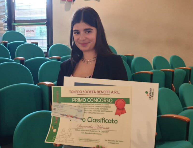 SAN BENEDETTO DEL TRONTO – Samantha Milenati, recentemente diplomata al liceo linguistico “Augusto Capriotti” è tra i vincitori del concorso indetto dalla Società Benefit Tokedo in collaborazione con l’Associazione Culturale “I Luoghi della Scrittura”.