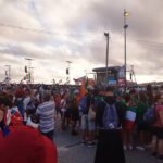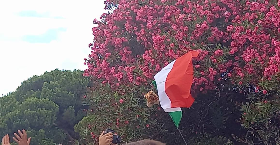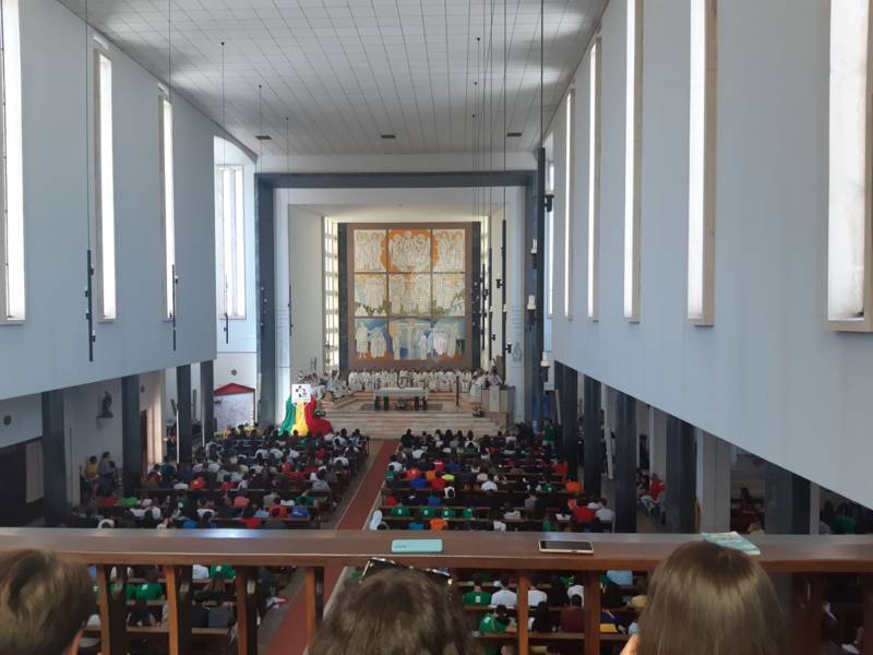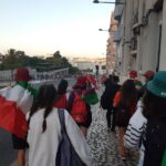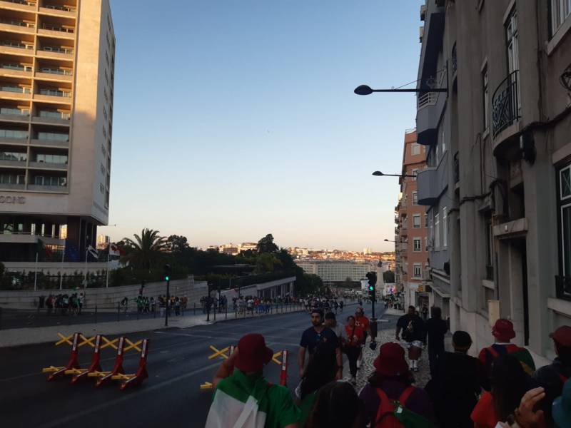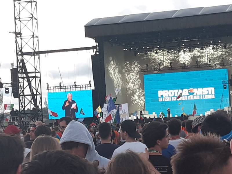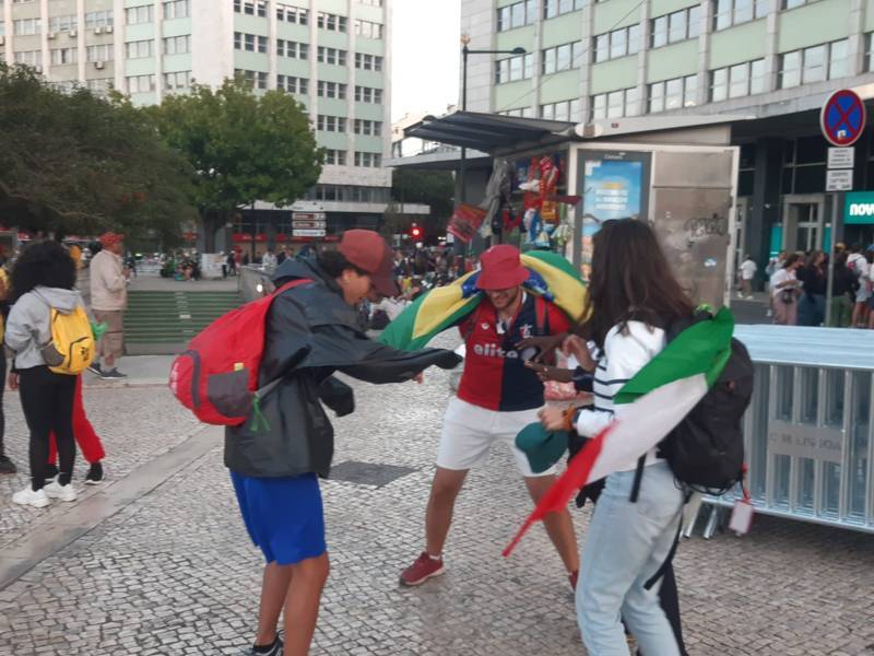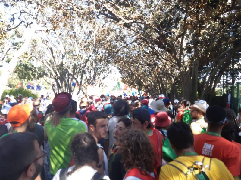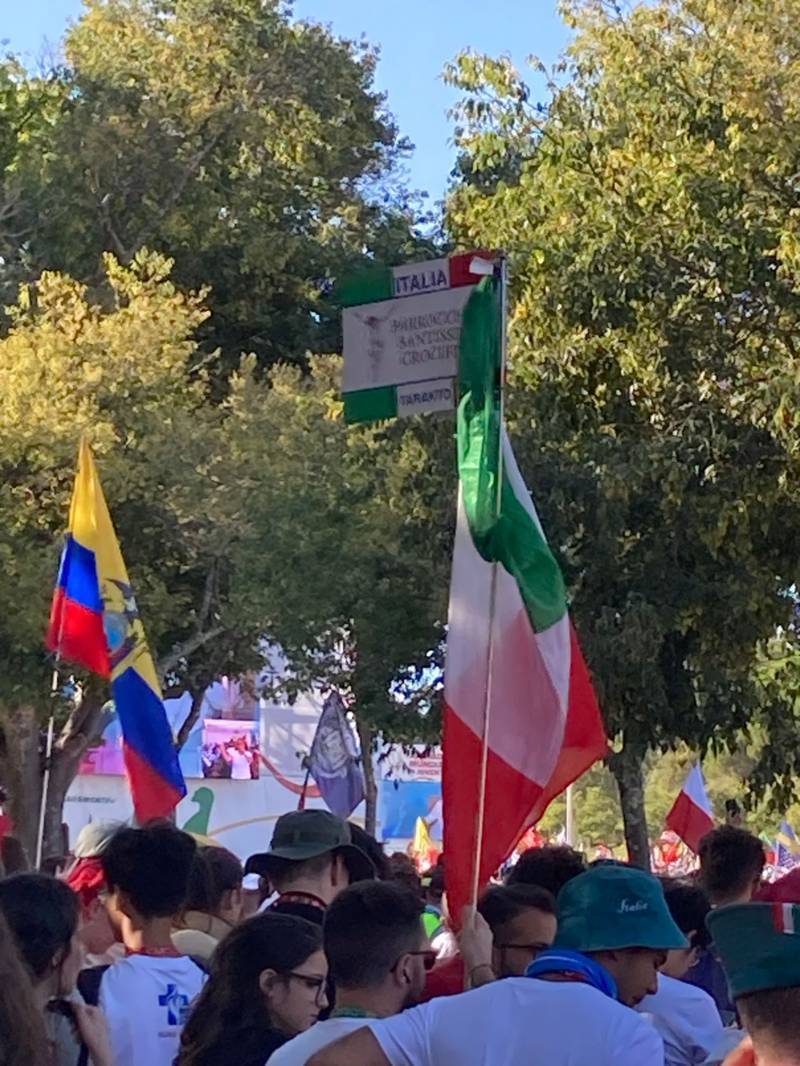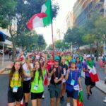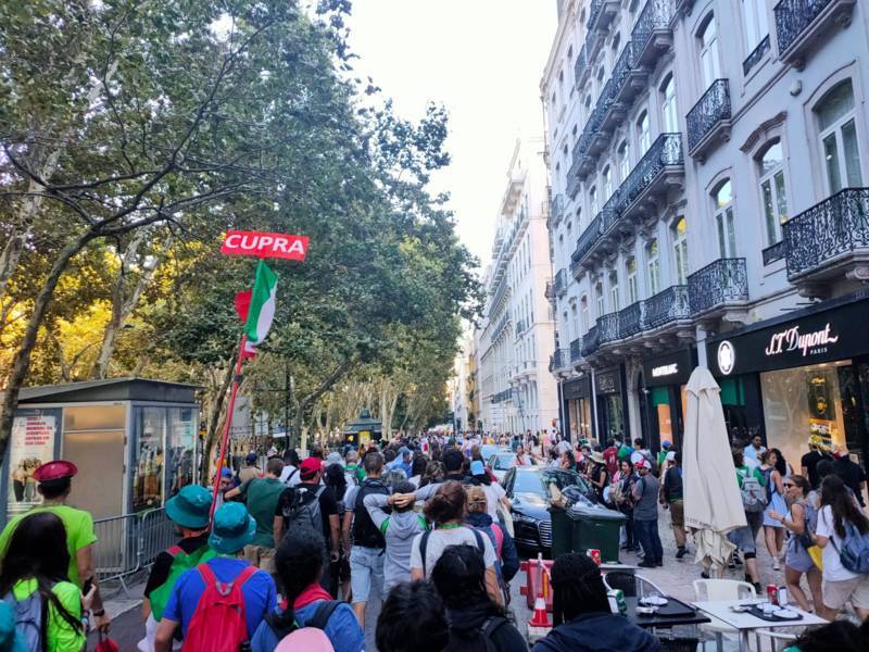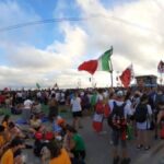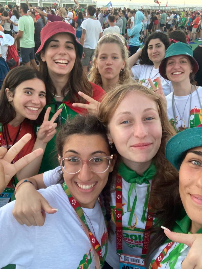 “Due sono i momenti che più ci hanno segnato – proseguono i ragazzi -. La sera di mercoledì 2 agosto abbiamo partecipato alla Festa degli Italiani, organizzata dalla Pastorale Giovanile della CEI insieme a TV2000. Presso il Passeio Marítimo di Algés, ci siamo ritrovati insieme a circa cinquantamila nostri coetanei italiani. È stata una festa/concerto molto bella! Prima abbiamo ricevuto il messaggio di saluto del presidente Mattarella e cantato l’inno di Mameli. Poi abbiamo ascoltato le testimonianze significative di alcuni personaggi celebri, come l’attrice Giusy Buscemi, la pallavolista Cristina Chirichella, lo scrittore ed insegnante Enrico Galiano, il fondatore di Libera don Luigi Ciotti e l’operatore umanitario Gennaro Giudetti, impegnato nella difesa dei diritti umani nelle zone di conflitto. Dopo questi momenti di riflessione, ci siamo scatenati ascoltando anche musica dal vivo, grazie a Fiat 131 e LDA, venuti appositamente per noi in Portogallo. Al termine del concerto, abbiamo ascoltato una riflessione del Card. Matteo Maria Zuppi, presidente della Conferenza Episcopale Italiana, il quale ci ha esortato ad allenarci ad amare Gesù, perché, amando Lui, ameremo anche noi stessi, le nostre fragilità, e anche gli altri. Abbiamo infine concluso la serata con un momento di preghiera, portando sul palco le due effigi sacre che noi ragazzi italiani abbiamo dato in dono alla Chiesa portoghese, ovvero il Crocifisso di San Damiano e l’Icona della Madonna di Loreto. Siamo andati a letto all’una, ma, nonostante la stanchezza, siamo stati veramente felici”.
