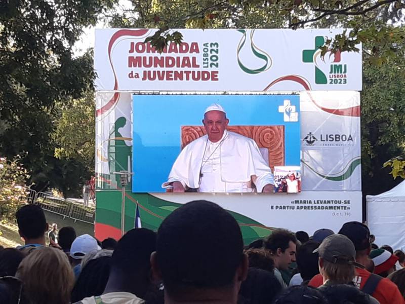 “Il secondo momento che vogliamo raccontare – continuano i nostri due giovani inviati – riguarda la Cerimonia di accoglienza al Pontefice nel Parque Eduardo VII di ieri 3 agosto, un momento veramente bello e ricco di emozione. Oltre alla bellezza di condividere l’esperienza con mezzo milione di giovani provenienti da tutto il mondo, ci hanno commosso le parole di Papa Francesco, il quale ci ha ricordato che Dio ci chiama per nome e ci ama così come siamo. Egli non vuole persone perfette né maschere. E non ci ama perché siamo migliori di altri, ma solo perché ci ha creato, e ci ama così come siamo, anche imperfetti“.