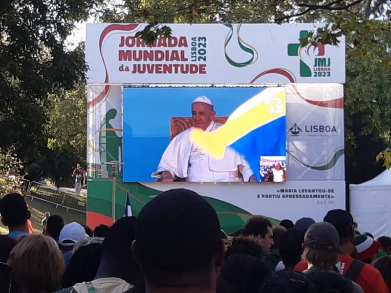 “La parola adatta per descrivere questi ultimi due giorni non può che essere ‘incontro’ – raccontano Leonardo Curzi e Vittoria Angeloni, due dei quattro giovani inviati speciali per il nostro giornale diocesano alla GMG (che vi abbiamo già presentato in questo articolo: https://www.ancoraonline.it/2023/07/28/foto-partiti-giovani-della-nostra-diocesi-la-gmg-lisbona/). Prima di tutto perché abbiamo finalmente incontrato papa Francesco per la prima volta da quando siamo qui in Portogallo, poi perché abbiamo incontrato anche tanti altri gruppi di giovani come noi, provenienti sia dall’Italia sia dal resto del mondo“.
