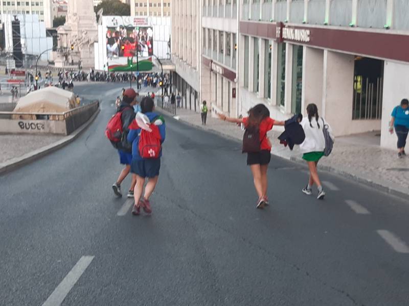 Dopo aver fatto una sosta in Francia, a Lourdes, e una in Spagna, a Santiago de Compostela, i ragazzi hanno raggiunto il Portogallo e si sono recati prima a Fatima, dove hanno visitato il Santuario di Nostra Signora del Rosario, e poi a Nazaré, la nota località balneare in Costa d’Argento, dove hanno visitato il centro storico e fatto il bagno nell’Oceano. Infine hanno viaggiato alla volta di Lisbona.