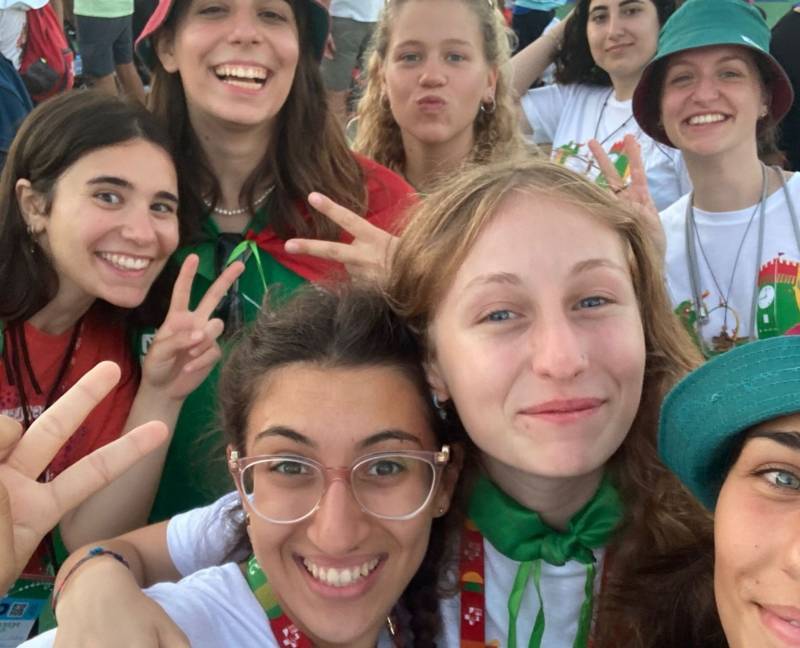“Due sono i momenti che più ci hanno segnato – proseguono i ragazzi -. La sera di mercoledì 2 agosto abbiamo partecipato alla Festa degli Italiani, organizzata dalla Pastorale Giovanile della CEI insieme a TV2000. Presso il Passeio Marítimo di Algés, ci siamo ritrovati insieme a circa cinquantamila nostri coetanei italiani. È stata una festa/concerto molto bella! Prima abbiamo ricevuto il messaggio di saluto del presidente Mattarella e cantato l’inno di Mameli. Poi abbiamo ascoltato le testimonianze significative di alcuni personaggi celebri, come l’attrice Giusy Buscemi, la pallavolista Cristina Chirichella, lo scrittore ed insegnante Enrico Galiano, il fondatore di Libera don Luigi Ciotti e l’operatore umanitario Gennaro Giudetti, impegnato nella difesa dei diritti umani nelle zone di conflitto. Dopo questi momenti di riflessione, ci siamo scatenati ascoltando anche musica dal vivo, grazie a Fiat 131 e LDA, venuti appositamente per noi in Portogallo. Al termine del concerto, abbiamo ascoltato una riflessione del Card. Matteo Maria Zuppi, presidente della Conferenza Episcopale Italiana, il quale ci ha esortato ad allenarci ad amare Gesù, perché, amando Lui, ameremo anche noi stessi, le nostre fragilità, e anche gli altri. Abbiamo infine concluso la serata con un momento di preghiera, portando sul palco le due effigi sacre che noi ragazzi italiani abbiamo dato in dono alla Chiesa portoghese, ovvero il Crocifisso di San Damiano e l’Icona della Madonna di Loreto. Siamo andati a letto all’una, ma, nonostante la stanchezza, siamo stati veramente felici”.
