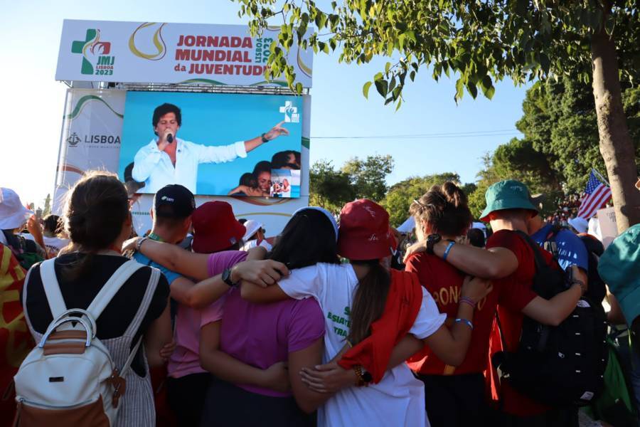 “È stato questo il momento più bello di ieri, 4 agosto, e forse di tutte le giornate vissute finora” – affermano Asia Francesca Brucciolo e Jhan Andres Socionovo, due dei quattro inviati speciali per il nostro giornale diocesano alla GMG di Lisbona (che vi abbiamo già presentato in questo articolo: https://www.ancoraonline.it/2023/07/28/foto-partiti-giovani-della-nostra-diocesi-la-gmg-lisbona/). “È stata una Via Crucis nuova, emozionante. In genere siamo abituati a camminare; oggi, invece, noi ragazzi siamo stati fermi, mentre a muoversi è stata solo la Croce che saliva verticalmente sulle terrazze del palcoscenico, una vera opera d’arte moderna. Le diverse stazioni sono state animate da musica suonata dal vivo e da coreografie aeree acrobatiche che, alla luce del tramonto, risultavano ancora più suggestive”.
