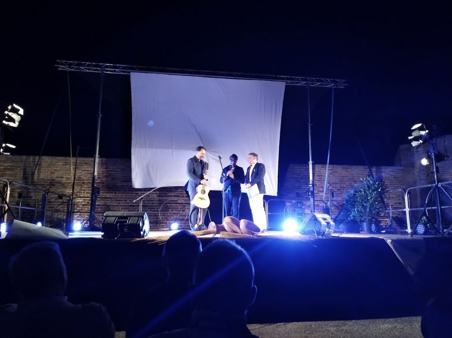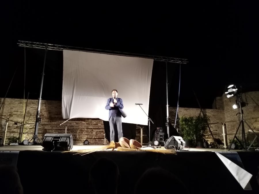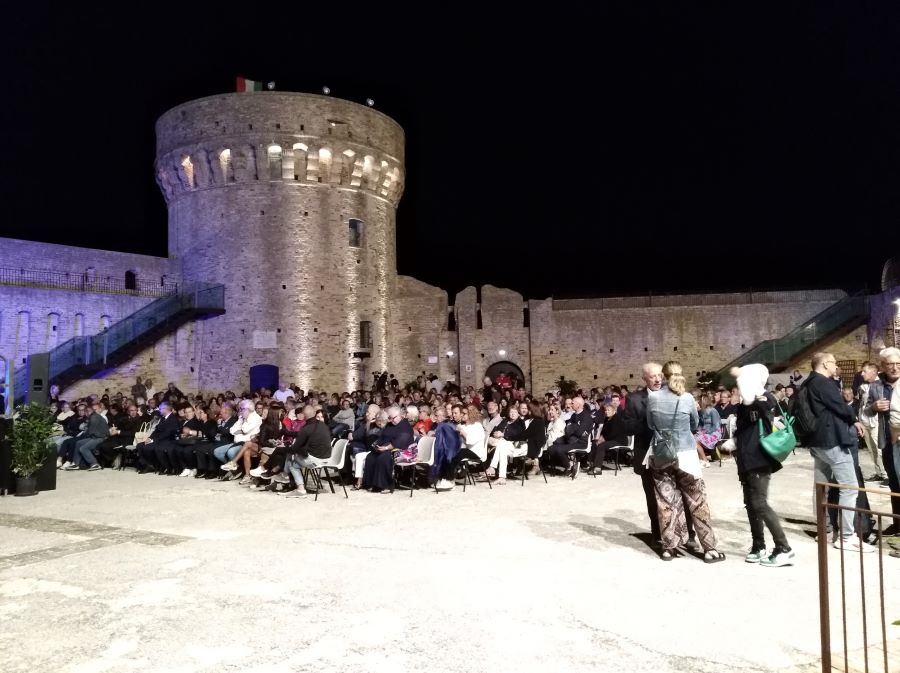ACQUAVIVA PICENA – Martedì 8 agosto all’interno della Fortezza di Acquaviva Picena l’Associazione Laboratorio Terraviva, presidente cav. Filippo Gaetani, ha organizzato la cerimonia di consegna del premio “Crolla d’oro” a Neri Marcoré, con la seguente motivazione: “Attore, conduttore, imitatore, musicista, cantante, artista dal talento originale e sopraffino con il quale da anni dispensa al vasto pubblico nazionale e oltre, sorrisi e occasioni di crescita all’insegna del buon umore e della cultura. Testimone sensibile, sempre attento, impegnato e coinvolto concretamente nella difesa dei diritti e nelle istanze di solidarietà e sostegno dei più piccoli e dei meno fortunati e nella difesa del Creato e dell’ambiente. Marchigiano autentico, innamorato delle Marche e dei suoi territori chiamati a non arrendersi mai, ma a risorgere e ripartire sempre con rinnovato slancio e vigore. Amico del Laboratorio Terraviva di Acquaviva Picena che con gioia e orgoglio gli conferisce la “Crolla d’oro”, in segno di stima, ammirazione e sincera gratitudine”. Il premio è stato consegnato a Marcorè dall’Amministratore delegato della Linergy, Ezio Parro, sponsor ufficiale della manifestazione. La “crolla” tiene unita tutta la pajarola, manufatto tipico di Acquaviva nel quale i fili di paglia legati insieme danno vita a magnifici lavori, la crolla quindi, viene assegnata a chi ogni giorno cerca di creare e mantenere la condivisione, l’unione e l’aggregazione. Presenti oltre ad un numeroso pubblico e tantissime autorità, anche il presidente della “Lega del filo d’oro” Rossano Bartoli e la mamma di Marcoré, Ines Sabbatinelli. Neri Marcorè e Piero Massimo Macchini hanno fatto trascorrere ai presenti ore di spensieratezza e sano divertimento, entrambi molto preparati e simpatici, sono riusciti a tenere incollati alle sedie il folto pubblico che ha sfidato una serata di forte vento freddo, pur di non perdere nulla del piacevole spettacolo. Sia Marcorè che Macchini hanno riflettuto sulle caratteristiche del “marchigiano” e la risposta è stata che una delle cose che lo contraddistingue dagli altri è proprio il carattere più attento, più avveduto e un ritmo più lento di vita, non che questa lentezza comprometta lo sviluppo, ma certo la storia, le tradizioni e il passato hanno lasciato solchi più profondi nei marchigiani rispetto agli altri. Il cav. Gaetani oltre ad elogiare il lavoro e la maestria delle pajarolare, cioè le donne che realizzano le pajarole, ha elogiato anche tutte le donne dell’Associazione Terraviva, donando a ciascuna un mazzo di fiori, inoltre ha lodato il valore della donna in generale. L’appuntamento è per il prossimo anno.