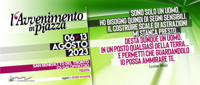 SAN BENEDETTO DEL TRONTO – “Sono solo un uomo, ho bisogno quindi di segni sensibili, il costruire scale di astrazioni mi stanca…Desta dunque un uomo, in un posto qualsiasi della Terra…e permetti che guardandolo io possa ammirare Te”. (Crestaw Milosz).