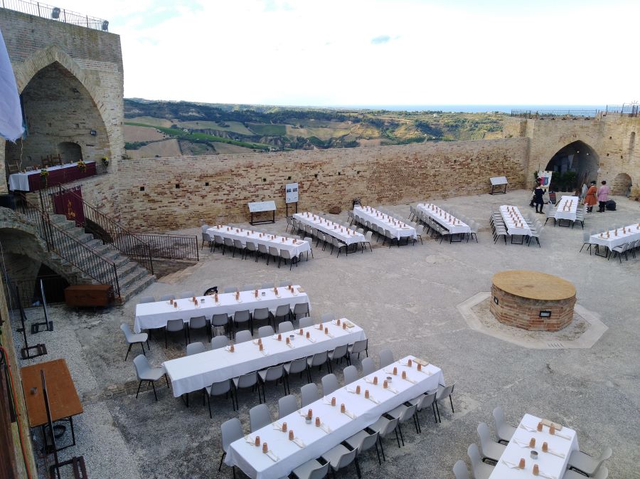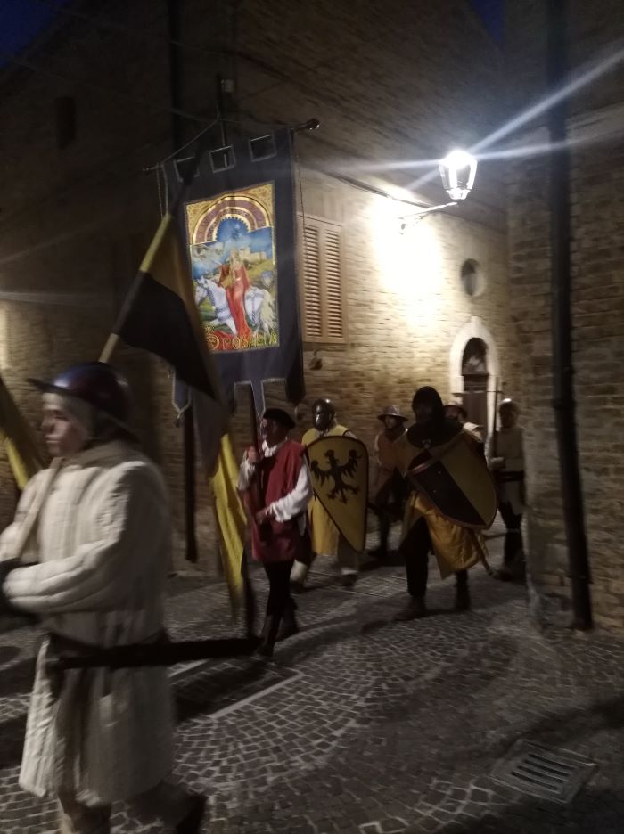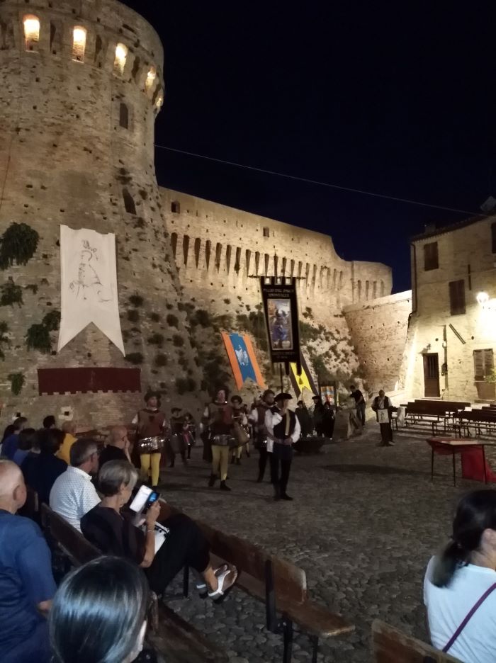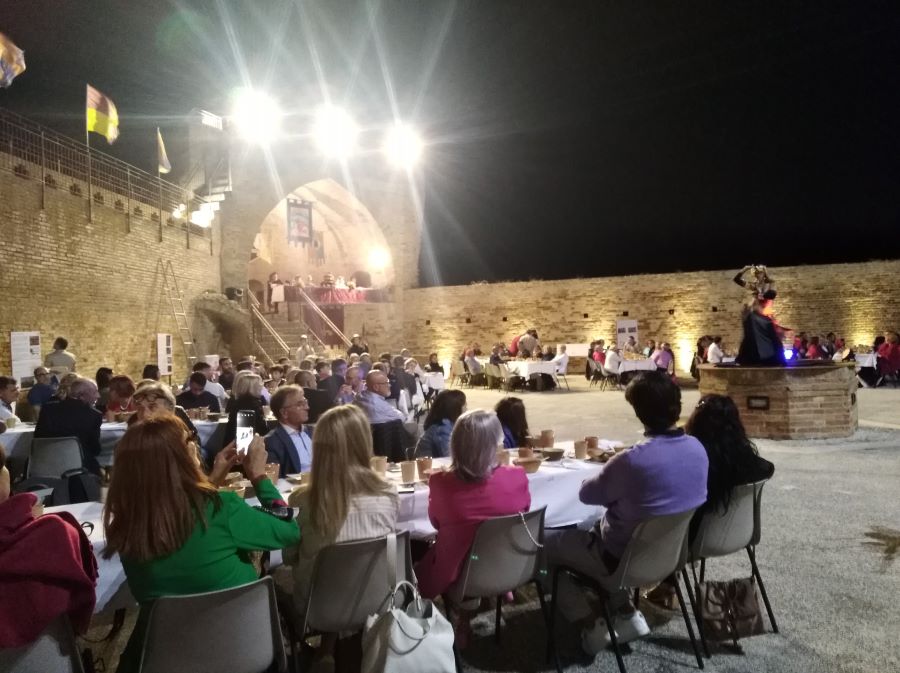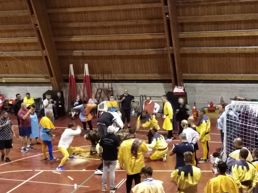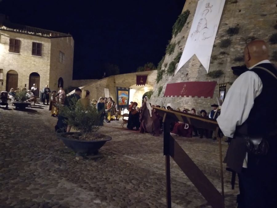 ACQUAVIVA PICENA – L’Ente Associazione Palio del Duca aps, il presidente cav. Nello Gaetani, il Direttivo, i soci e i membri, possono ritenersi soddisfatti della XXXVI edizione di “Sponsalia” che come ogni anno ha garantito emozioni a non finire, nonostante il maltempo abbia compromesso la serata dedicata alla contesa del Palio tra i due Rioni, la “macchina” organizzativa si è rivelata più efficiente che mai: non potendo disputare le gare in Piazza del Forte, tutto è stato trasferito nella palestra comunale di Acquaviva Picena. Il rione Aquila si è aggiudicato il Palio, istoriato da Grazia Carminucci, vincendo tutte le gare e lasciando attoniti gli atleti e i tifosi del rione della Civetta. Gli atleti del rione dell’Aquila hanno dimostrato una grande preparazione e a tutti gli altri non è rimasto che il complimentarsi di fronte a tanta abilità. Si ringrazia il Presidente della commissione artistica, Saverio Magno, per la splendida collaborazione e dedizione. Sponsalia è un appuntamento importante per Acquaviva Picena, ma anche per tutta la Regione, in quanto è stata riconosciuta come Rievocazione Storica proprio dal Consiglio regionale delle Marche. Un ringraziamento grande a tutto l’Ente, ma anche alla Regione Marche, al Ministero dei Beni culturali, a tutti gli sponsor, in modo particolare alla BCC Banca del Piceno, alla quale è stato consegnato l’attestato di riconoscimento attraverso il vice presidente vicario Claudio Censori. Si ringrazia l’Amministrazione Comunale di Acquaviva Picena e in particolare il sindaco Sante Infriccioli e l’Assessore al turismo e cultura Marianna Spaccasassi. Tanti gli artisti e le varie compagnie che si sono susseguiti nei giorni di giovedì 3, venerdì 4, sabato 5 e domenica 6 agosto, un grazie speciale a Fabio Di Cocco e alla Compagnia di Santo Macinello per la fraterna collaborazione, ma un grazie anche alla delegazione del Palio del Barone di Tortoreto, alla delegazione del Palio dei Castelli di San Severino Marche, agli arcieri di San Severino, Toi Ahi danza del fuoco, Armigeri e balestrieri di Bucchianico, Errabundi musici, Metamorfosi danze, Diavoli rossi, Gobbo di Cicignano, Vassago, Pier Paolo Paderzini, Donika. Un ringraziamento al ristorante “La dimora di Bacco” per aver curato il Banchetto nuziale medievale, alla quale hanno partecipato anche Sharon Mezzabotta e Mattia Ventura, impersonando gli sposi protagonisti della Rievocazione, Forasteria degli Acquaviva e Rinaldo dei Brunforte. Un ringraziamento alla Polizia Municipale, alla Stazione dell’Arma dei Carabinieri, al servizio di sicurezza e ai Vigili del fuoco. Grazie alla Pirotecnica Marchigiana di Sandro Carassai per i fuochi d’artificio. L’Ente Associazione Palio del Duca aps da l’appuntamento la prossimo anno.
