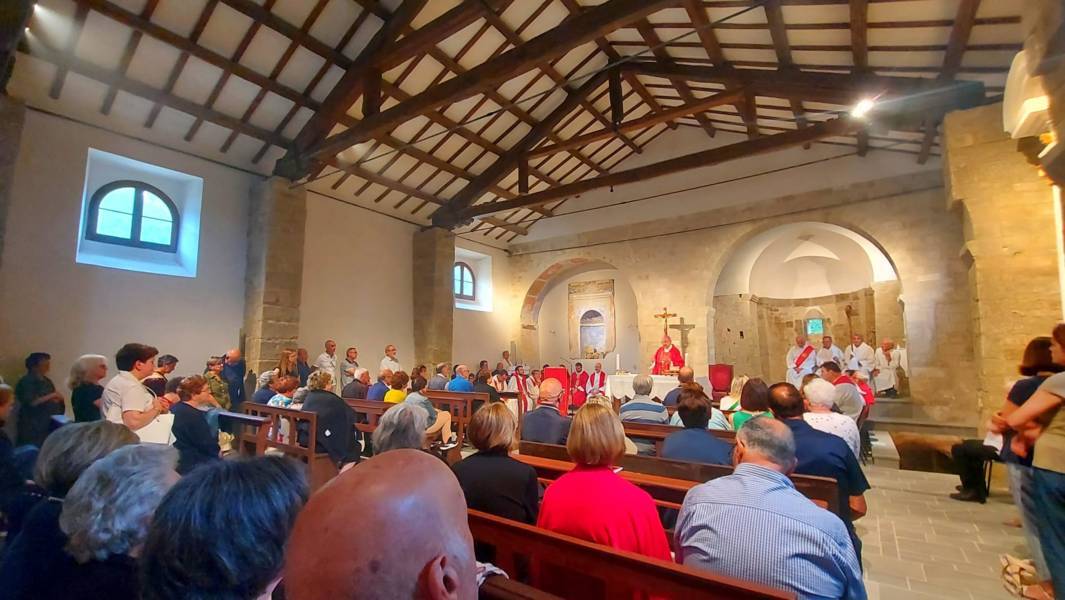 MONTEMONACO – È stata riaperta giovedì 10 Agosto, dopo sette anni di inagibilità, la chiesa di San Lorenzo in Montemonaco, in occasione della ricorrenza della festività del Santo Patrono. Chiusa a causa del terribile sisma del 2016, l’edificio sacro ha finalmente riaperto le porte, anche se i lavori non sono ancora del tutto completati. La comunità ha partecipato numerosa alla Santa Messa delle ore 18:00 presieduta dal vescovo della Diocesi di San Benedetto del Tronto – Ripatransone – Montalto, Mons. Carlo Bresciani. Hanno concelebrato anche il parroco don Luca Rammella, il viceparroco don Lukasz Tlalka e padre Maurizio Fioravanti e altri sacerdoti che sono originari della comunità o che negli anni si sono succeduti nella guida pastorale della Parrocchia, in particolare don Alfonso Rosati, che aveva celebrato l’ultima Messa con il popolo il 21 agosto del 2016 all’interno dell’edificio sacro e successivamente il 10 agosto del 2017 e del 2018 all’aperto.