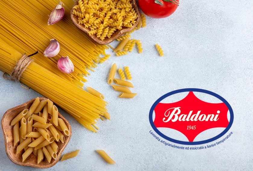 La storia del pastificio Baldoni sa di passione, quella passione che portò Baldoni Alfredo, già dipendente di un pastificio, di fronte al rifiuto della proprietà di riprendere la produzione di pasta, ne chiede in affitto i macchinari (3 dicembre 1945) ed avvia l’attività in proprio come ditta individuale artigiana per la produzione di pasta alimentare secca. Ad aiutarlo in questa impresa il padre Enrico già avvezzo nel settore, essendo stato capo pastaio responsabile di produzione in un grande pastificio del triestino. Padre e figlio affinano le fasi di lavorazione con speciale attenzione rivolta alla fase di essiccazione della pasta, allora soggetta al clima giornaliero e in particolar modo condizionata dalla volubilità delle condizioni atmosferiche. Il pastificio segue diverse tecniche di lavorazione, quali, il procedimento semiautomatico, la trafilatura a teflon e ruvida al bronzo, con tempi di essiccazione di 24-36 ore a seconda del formato e a temperature che variano dai 60 gradi nella fase di “incartamento” (pre-essiccazione), ai 38 gradi dell’essiccazione vera e propria.