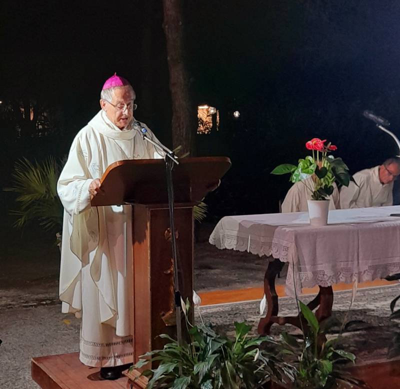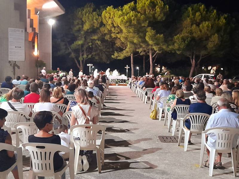 MARTINSICURO – Si è svolta ieri sera, 15 agosto, alle ore 21:00, presso il piazzale antistante la chiesa di San Gabriele dell’Addolorata in Villa Rosa di Martinsicuro, una Celebrazione eucaristica presieduta dal vescovo della Diocesi di San Benedetto del Tronto – Ripatransone – Montalto, Mons. Carlo Bresciani, in occasione della festività dell’Assunzione. La Santa Messa, svoltasi all’aperto per poter contenere la numerosa folla di fedeli accorsi, sia residenti locali che turisti, è stata concelebrata dal parroco don Alfonso Rosati. Presente anche il diacono Walter Gandolfi.