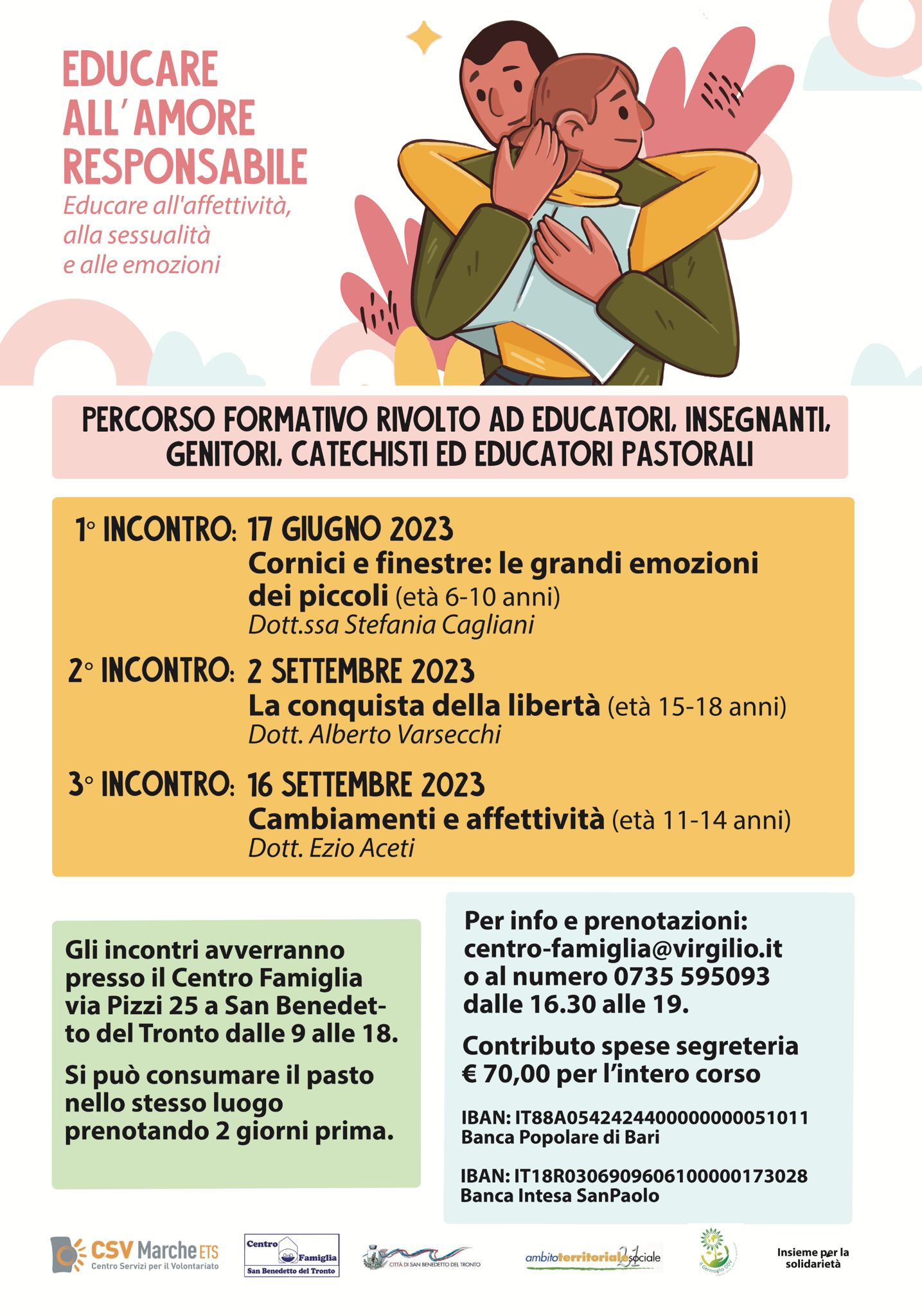 SAN BENEDETTO DEL TRONTO – Prosegue il percorso formativo rivolto ad educatori, insegnanti, genitori, catechisti ed educatori pastorali dal titolo: “Educare all’amore responsabile”.