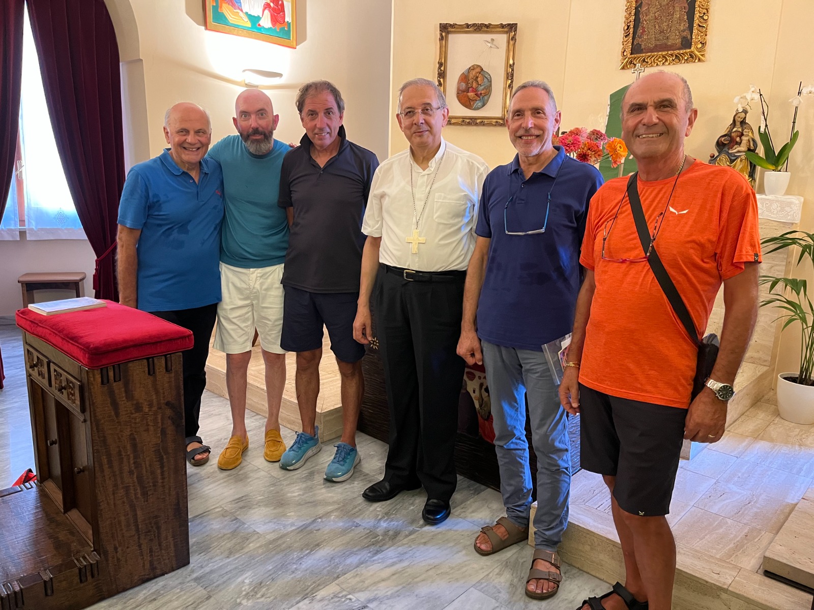 SAN BENEDETTO DEL TRONTO – Ieri pomeriggio un piccolo gruppo di pellegrini, che vivranno il cammino di Santiago, formato dal diacono Walter Gandolfi, dal dott. Giuseppe Romani, Giuseppe Lagalla e da Giancarlo Paccamiccio sono stati accolti dal Vescovo Carlo Bresciani per il rito della benedizione del pellegrino.