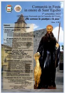 Queste le parole con cui il parroco don Luigino illustra il programma della festa approvato dal Consiglio Pastorale Parrocchiale nella seduta del 21 agosto 2023: “Domani, 1° settembre, celebreremo la festa di Sant’Egidio abate patrono di tutta Sant’Egidio alla Vibrata. La festa del 2023 certamente non ci coglie come l’anno scorso o come nei giorni della pandemia. Ogni anno è diverso! Ci coglie in situazioni e sentimenti diversi, personali, comunitari e mondiali.
