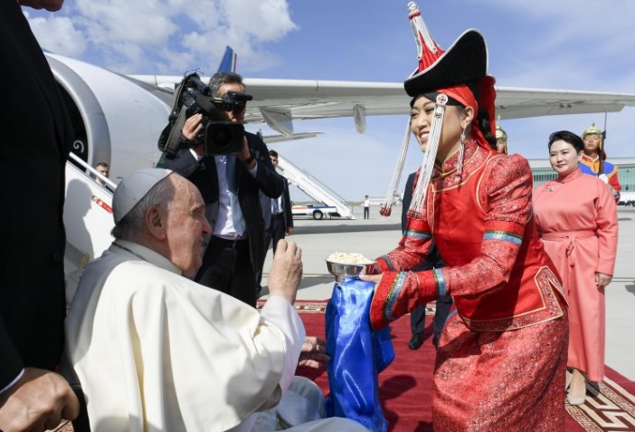 Papa Francesco è giunto a Ulaanbaatar, la capitale della Mongolia, atterrando alle 9.51 (ora locale) all’Aeroporto internazionale Chinggis Khaan. A partire da oggi 1° fino al 4 settembre, si snoderà il 43° viaggio apostolico del suo pontificato. Il primo viaggio di un Papa in questa terra dell’Asia centrale.