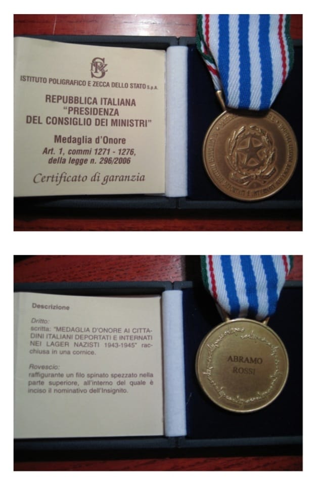 Grazie alla Legge 296 del 2006, nel gennaio del 2010 sono stato insignito della Medaglia d’Onore come Volontario della Libertà, perché “catturato, deportato ed internato nei lager nazisti, 1943-45”. È stata per me una grande emozione ricevere questo riconoscimento durante il mandato del presidente della Repubblica Giorgio Napolitano.
