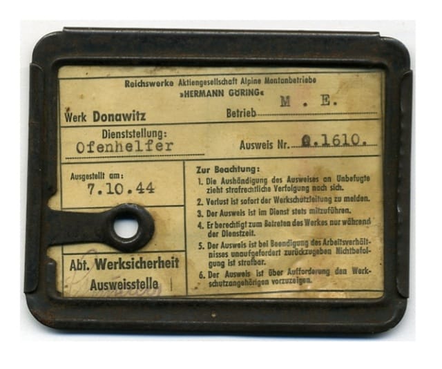 I Tedeschi ci utilizzarono come forza lavoro in una fabbrica, come avveniva per tutti i deportati. La fabbrica era una fonderia intitolata al comandante dell’Aviazione tedesca Hermann Goering e si trovava in località Leonben – Donawitz, a circa 25 Km dal campo. Per raggiungerla bisognava percorrere circa 5 chilometri a piedi fino alla stazione ferroviaria e altri 20 km circa in treno. Il primo turno di lavoro iniziava alle 6:00 del mattino e terminava alle ore 18:00, ma la sveglia suonava alle ore 4:00 per avere il tempo necessario per recarsi al lavoro. Il turno di notte iniziava alle ore 18:00 e terminava alle ore 6:00. Ogni turno durava una settimana. La mia mansione consisteva nell’effettuare la cernita dei rottami e di altri materiali ferrosi da introdurre, tramite apposite gru, in cassoni successivamente destinati agli altiforni dove sarebbero stati fusi per ottenere materiale necessario per costruire le paratie dei carri armati. Io ero l’unico italiano, coadiuvato da una giovane austriaca e da una ragazza ucraina che manovravano le gru. Anche se si trattava di un duro lavoro, mi reputavo fortunato, molto più dei soldati Russi che in genere venivano destinati agli altiforni e che vivevano in condizioni pessime, ancora più dure delle nostre. Nel mio settore il capo operaio era un tale Franz Mauta, un austriaco che mi prese a benvolere e che spesso mi forniva del pane e dello speck. Terminato il turno di lavoro, dovevamo ripercorrere il tragitto inverso, arrivando al campo intorno alle ore 20:00 e, dopo il contrappello, potevamo andare in mensa per avere il solito mestolo di brodaglia e quel poco di pane. Dopo il pasto, tornavamo nella baracca, stanchi ed infreddoliti a causa delle rigide temperature. A volte trovavo sotto il cuscino delle patate che un collega, addetto al servizio mensa, mi faceva trovare. Non esisteva biancheria intima e l’igiene, come potete immaginare, scarseggiava ed era al limite dell’umana sopportazione: i parassiti proliferavano! Mancavano locali di ricreazione, né mai si potevano chiedere periodi di riposo in branda, salvo in presenza di febbre alta. Le guardie armate sollecitavano ad alzarsi, apostrofandoci in tedesco: “Tu non sei malato e devi lavorare, perché il Reich ha bisogno di te!”. Il nostro lavoro coatto era ricompensato con alcuni fenich, ovvero sottomultipli del marco, con cui in fabbrica potevamo comprare qualche bicchiere di birra, giacché nell’accampamento non esistevano negozi. Considerando queste grosse privazioni, solo la Divina Provvidenza, a cui facevo continuamente appello, mi diede la possibilità di rivedere i miei cari.