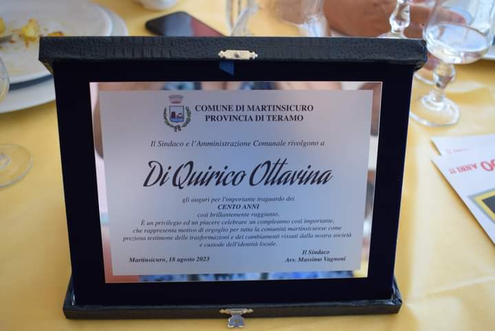 MARTINSICURO – Circondata dal grande affetto dei suoi numerosi familiari, la signora Ottavina Di Quirico ha raggiunto un traguardo che non a tutti è concesso: 100 anni. Festeggiata dalla comunità e anche da Massimo Vagnoni, Sindaco di Martinsicuro, Ottavina ha ripercorso ai nostri microfoni un secolo di storia ricco di tanti cambiamenti: nei diritti, nello stile di vita e nelle abitudini. Un secolo vissuto da protagonista, grazie al suo carattere forte, combattivo e molto paziente.
