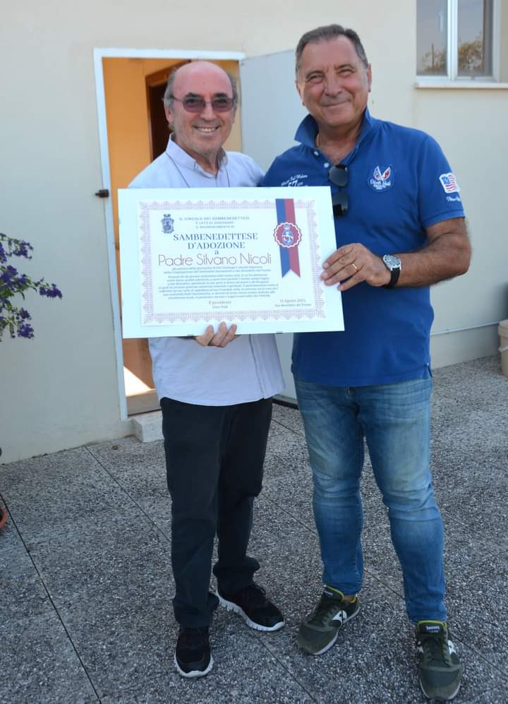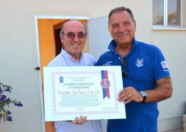 SAN BENEDETTO DEL TRONTO – Responsabile della Comunità Religiosa dei Sacramentini presente in San Benedetto del Tronto, cappellano dell’Ospedale Madonna del Soccorso, viceparroco della Parrocchia San Giuseppe, il settantasettenne padre Silvano Nicoli è divenuto socio onorario del Circolo dei Sambenedettesi che gli ha conferito il titolo di “Sambenedettese d’adozione“.