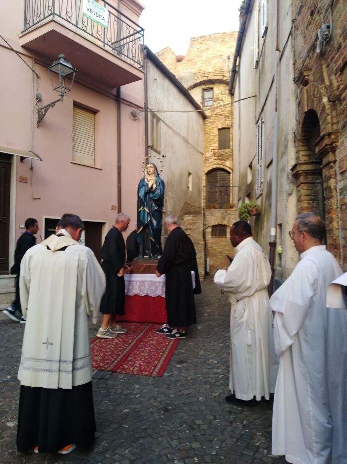 La statua che raffigura la Vergine Maria è poi la stessa che viene portata in processione il venerdì santo dietro la bara del Cristo Morto. Il culto dell’Addolorata è stato diffuso in tutta Europa e successivamente in tutto il mondo dai “Serviti” e poi anche dai francescani.
