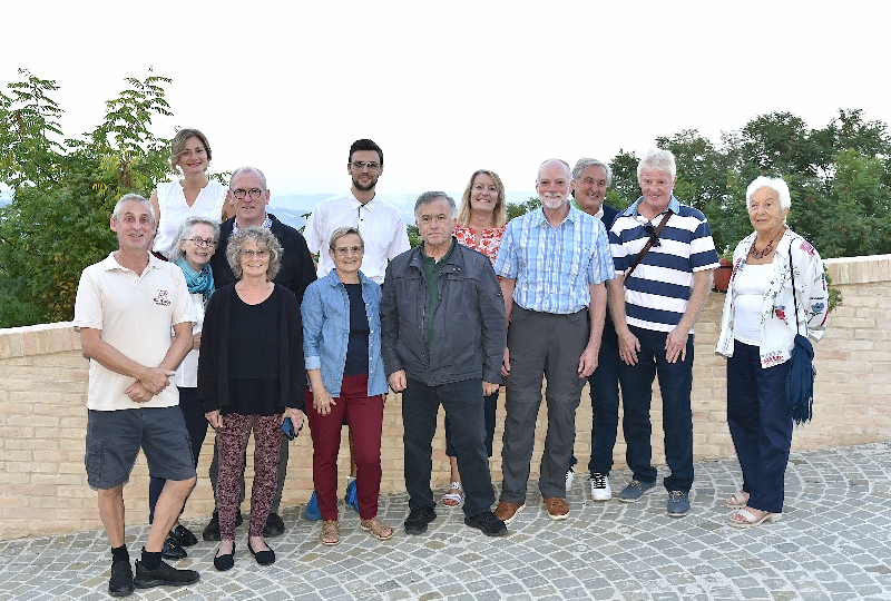 Una graditissima apericena, offerta a tutti nel locale attrezzato anche a mostra dei numerosi dipinti qui realizzati, ha preceduto gli interventi di Marino Screpanti, di Giuseppe Mariucci e dell’artista Tony Conner. Con il contributo di Tim, che fungeva da traduttore, essi, nel sottolineare la gratitudine agli ospiti per avere scelto Montelparo quale luogo di ritiro artistico, hanno ancora una volta ringraziato i titolari dell’hotel, Madeleine e Tim, per il loro impegno duro e costante nel far trascorrere questi giorni a Montelparo nel migliore dei modi (ottima ospitalità, ottima cucina e ottima guida per far loro conoscere queste nostre meravigliose terre)!