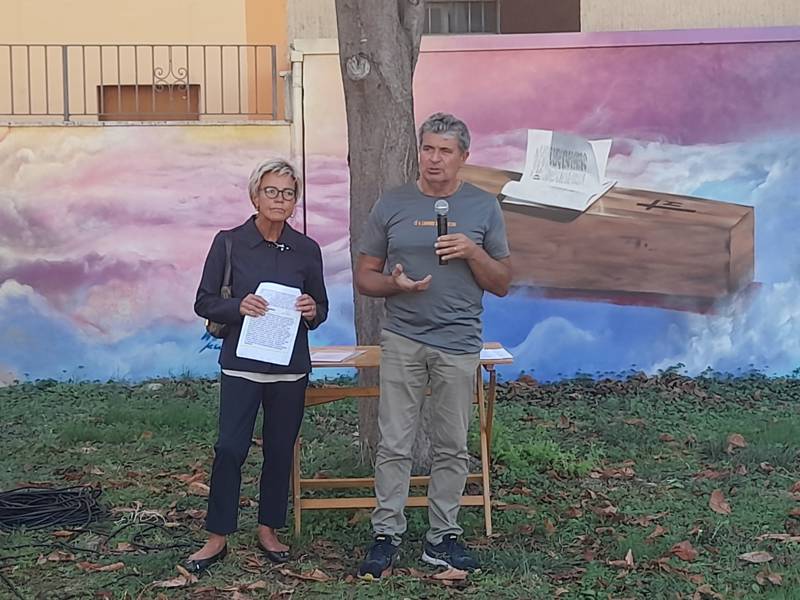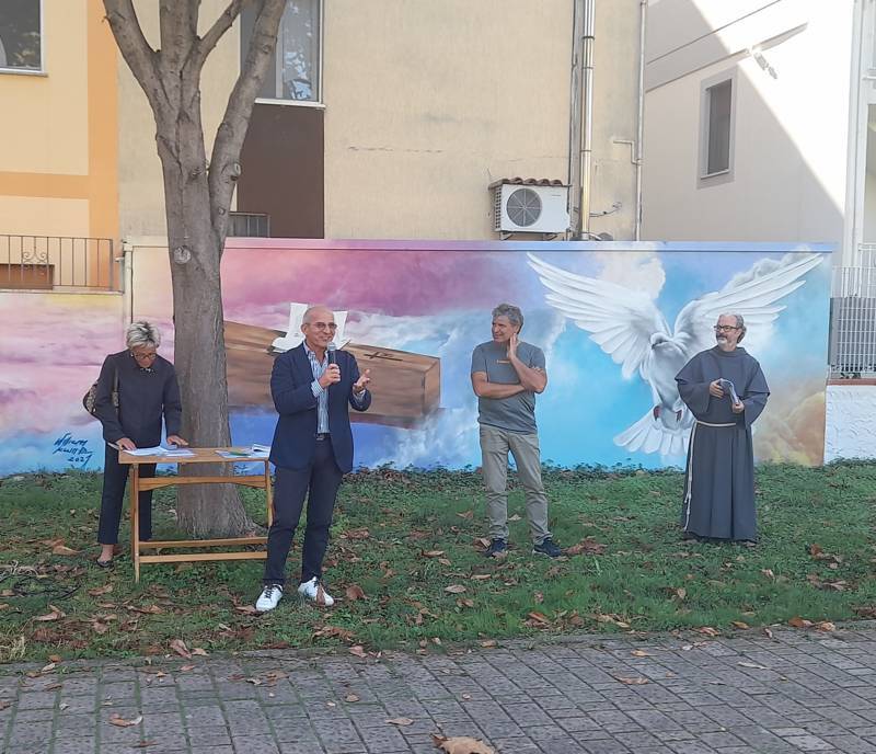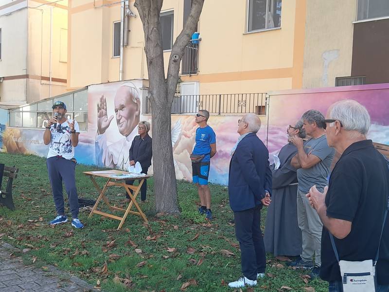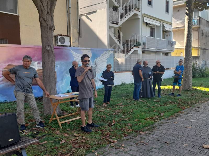Ultimi ad intervenire Pietro Colucci, presidente del quartiere Sant’Antonio (o presidente dell’Associazione Parco Antoniani Eventi che si occupa della cura del parco Woytila?), e William Kaine, l’artista che ha realizzato uno dei murales presenti all’interno del parco Woytila.