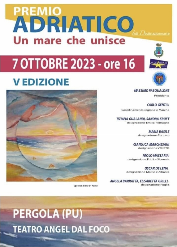 L’evento, organizzato dall’Associazione “Irdi-destinazionearte”, presieduta dal critico d’arte e letterario Massimo Pasqualone con la collaborazione (per la Regione Marche) di Carlo Gentili, si propone di creare una rete nazionale ed internazionale di artisti e di scrittori che contribuiscano, con le loro opere, a diffondere l’arte in tutte le svariate sfaccettature. Per ogni Regione Adriatica che si affaccia sulla sponda italiana e sulla sponda opposta, vengono premiate quindici personalità che hanno dato lustro al loro territorio.