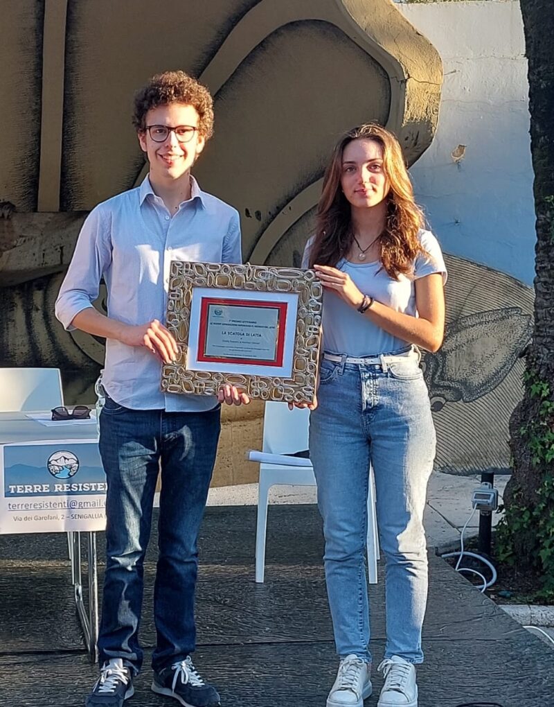 SAN BENEDETTO DEL TRONTO – I giovani Greta Bajrami e Matteo Olivieri ricevono il premio letterario “Terre resistenti”.