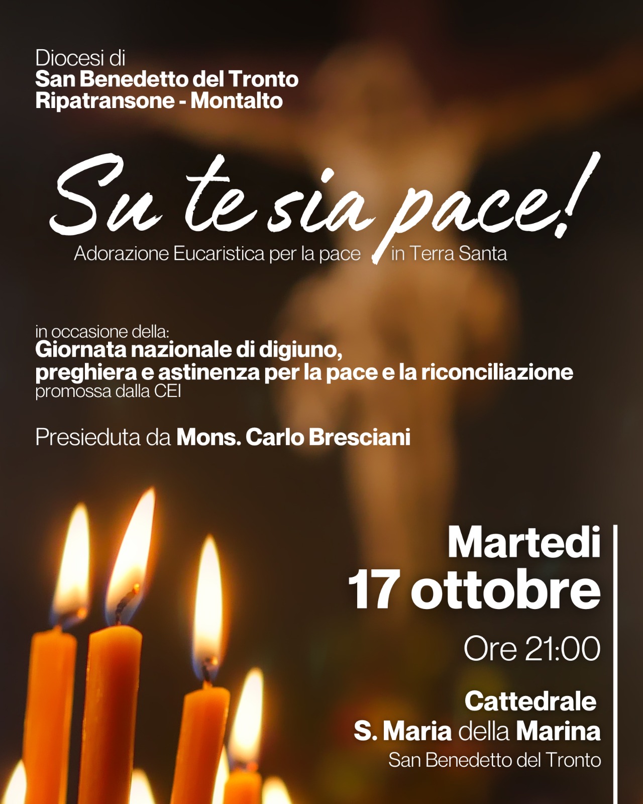 Questa sera, alle ore 21.15, tutte le persone sono invitate presso la Cattedrale Madonna della Marina, a San Benedetto del Tronto, dove il vescovo Mons. Carlo Bresciani presiederà la preghiera per la pace e la riconciliazione.