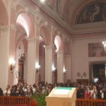 L’incontro di adorazione eucaristica si è concluso con il canto del Salve Regina e una preghiera al Signore di invocazione della pace: “Signore e Padre dell’umanità, che hai creato tutti gli esseri umani con la stessa dignità, infondi nei nostri cuori uno spirito fraterno. Ispiraci il sogno di un nuovo incontro, di dialogo, di giustizia e di pace. Stimolaci a creare società più sane ed un mondo più degno, senza fame, senza povertà, senza violenza, senza guerre. Il nostro cuore si apra a tutti i popoli e le nazioni della terra, per riconoscere il bene e la bellezza che hai seminato in ciascuno di essi, per stringere legami di unità, di progetti comuni e di speranze condivise“.