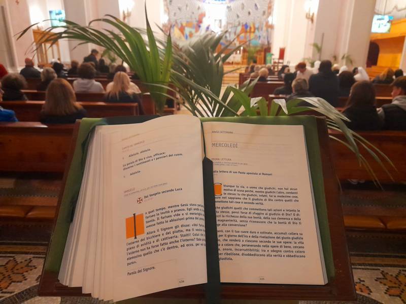 È con queste parole che il vescovo della Diocesi di San Benedetto del Tronto – Ripatransone – Montalto, Mons. Carlo Bresciani, ha aperto l’incontro “Su te sia pace!”, un’ora e mezza di adorazione eucaristica e di preghiera per la pace in Terra Santa, organizzata martedì 17 ottobre, alle ore 21:00, in occasione della Giornata Nazionale di digiuno, preghiera ed astinenza per la pace e la riconciliazione promossa dalla CEI (Conferenza Episcopale Italiana). L’evento è avvenuto in San Benedetto del Tronto, presso la Cattedrale Santa Maria della Marina, che per l’occasione era gremita di persone di tutte le fasce di età: bambini, giovani, adulti ed anziani. Presenti molti sacerdoti, diaconi e fedeli provenienti da tutte le Parrocchie della Diocesi.
