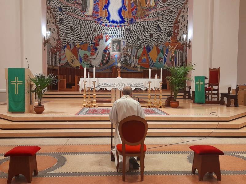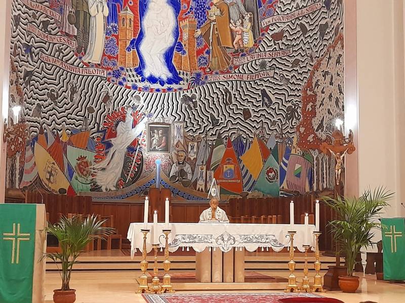 L’incontro di adorazione eucaristica si è concluso con il canto del Salve Regina e una preghiera al Signore di invocazione della pace: “Signore e Padre dell’umanità, che hai creato tutti gli esseri umani con la stessa dignità, infondi nei nostri cuori uno spirito fraterno. Ispiraci il sogno di un nuovo incontro, di dialogo, di giustizia e di pace. Stimolaci a creare società più sane ed un mondo più degno, senza fame, senza povertà, senza violenza, senza guerre. Il nostro cuore si apra a tutti i popoli e le nazioni della terra, per riconoscere il bene e la bellezza che hai seminato in ciascuno di essi, per stringere legami di unità, di progetti comuni e di speranze condivise“.