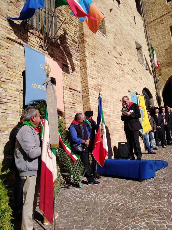 ACQUAVIVA PICENA – Domenica 5 novembre ad Acquaviva Picena, l’Associazione combattenti e reduci, presidente cav. Duilio Grilli, anche quest’anno si è occupata di organizzare la cerimonia in ricordo dei Caduti di tutte le guerre. Il corteo è partito in via Roma e ha attraversato la strada principale del paese. Tutti si sono diretti in chiesa per la Celebrazione Eucaristica. Il parroco don Giuseppe, terminata la Messa ha benedetto la corona d’alloro che in seguito è stata deposta vicino il monumento dei Caduti di Acquaviva Picena. Il cav. Grilli ha lasciato la parola al sindaco di Acquaviva Picena Sante Infriccioli, il quale ha detto: “Ringrazio tutti i presenti. Come ogni anno ci ritroviamo per commemorare e celebrare il 4 novembre, festa dell’Unità nazionale e delle forze armate. Il 4 novembre è anche la festa dei militari in servizio, visto quello che sta succedendo sullo scenario internazionale, il nostro pensiero non può che andare anche a coloro che sono impegnati nelle missioni di pace internazionali all’estero. La nostra gratitudine va anche ai soldati italiani impegnati, lo facciamo da questo luogo, dedicato alla memoria dei nostri caduti”. Il cav. Grilli ha ringraziato tutte le associazioni combattentistiche e d’arma, tutte le autorità civili, militari, politiche e religiose intervenute. Ha ringraziato la Regione Marche per il Patrocinio, tutti coloro che hanno collaborato per la buona riuscita della manifestazione. Ha ringraziato anche tutti i tesserati della sezione acquavivana dell’Associazione Combattenti e reduci e ha ricordato che l’associazione è presente ad Acquaviva Picena dal 1959 per volere degli acquavivani reduci della prima e della seconda guerra mondiale.