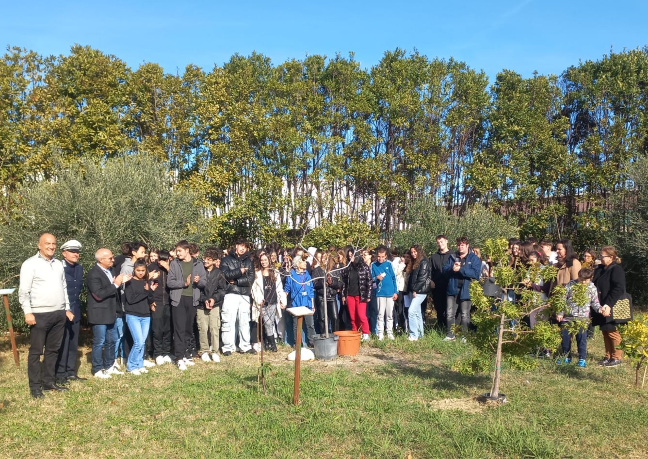 SAN BENEDETTO DEL TRONTO – Ieri, lunedì 20 Novembre, in occasione della Giornata degli Alberi che si celebrerà domani su tutto il territorio nazionale, gli alunni delle classi 2^ A, 3^ A, 4^ A Amministrazione, Finanza e Marketing dell’Istituto Tecnico del settore Economico e 4^ D del Liceo Linguistico hanno partecipato alla messa a dimora, nelle aree verdi dell’IIS “A. Capriotti”, di due alberi, Schinus molle e Ficus carica, dei quali i ragazzi, a turno, si prenderanno cura per l’intero anno scolastico.