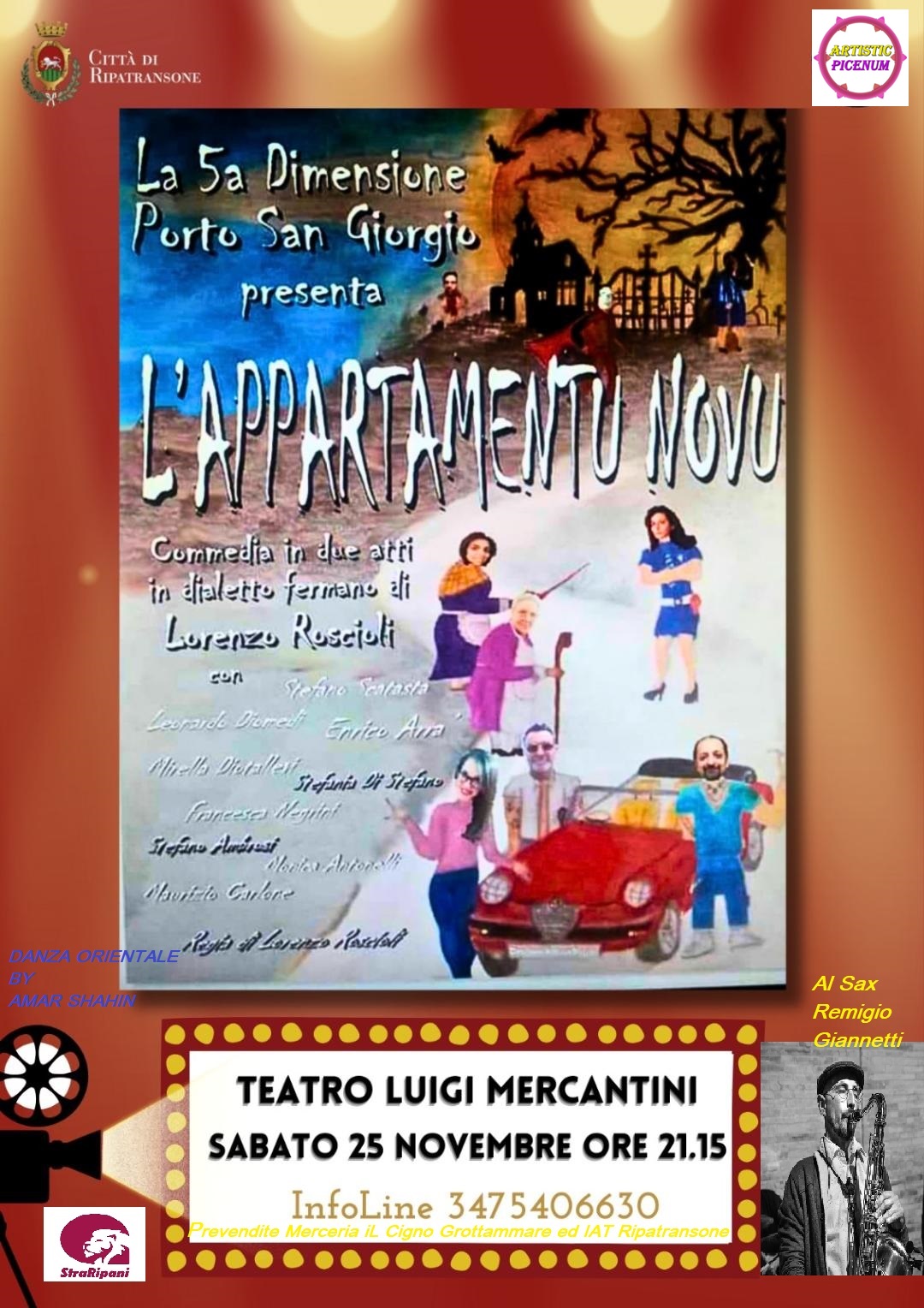 Spazio anche nel welcome iniziale e tra le pause degli atti, a due performer molto conosciuti in Riviera: Remigio Giannetti ed Amar Shahin infatti delizieranno il pubblico con esibizioni, rispettivamente al sax e danza orientale.