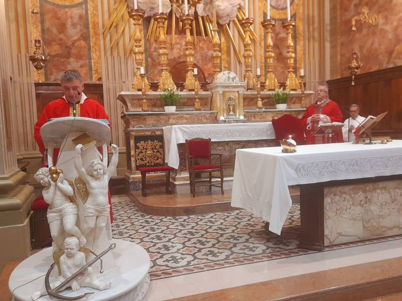 Dall’omelia del vescovo Bresciani: “Durante questa Messa, dedicata ai pescatori in occasione della Giornata Mondiale della Pesca, vogliamo ringraziare e pregare il Signore: è molto bello che ci sia questa sensibilità che sa riconoscere, sa ringraziare e sa mantenere quella fede semplice, ma vera e autentica, una fede che regge tutta la nostra vita. La Parola del Signore, oggi come sempre, ci orienta a riflettere sulla Casa di Dio: il Tempio. La Prima Lettura parla di Giuda Maccabeo e dei suoi fratelli. Ad un certo punto, ci viene ricordato che, dopo aver vinto il nemico in battaglia, il nemico che opprimeva Israele, Giuda si preoccupa di ricostruire il Tempio, si preoccupa di rendere bella la Casa del Signore e ci viene raccontato che viene riconsacrata. Tutto questo dimostra non soltanto l’amore per la parte materiale, cioè per le mura che vengono ricostruite, ma dimostra anche la cura della presenza di Dio in mezzo al popolo, perché il Tempio era il luogo dove veniva costruita l’Arca dell’Alleanza, il segno del rapporto tra Dio e il popolo. Tutto questo ci richiama ad un aspetto molto importante: avere cura della presenza di Dio. Dio ci ha donato la sua presenza e noi dobbiamo curare questa presenza. C’è un’indicazione molto importante nella Parola di oggi: preoccuparsi di rendere molto bella la Casa di Dio. Non certo amore per la bellezza, ma per amore per Dio. Quando si ama una cosa, la si vuole rendere e mantenere bella; quando si vuole fare qualcosa di buono per una persona che si ama, si fa qualcosa di bello. Ci viene poi sottolineato anche un altro aspetto: è importante pensare a quello che si vive nella Casa di Dio. Cosa era successo nel Tempio di Gerusalemme? Non era più una casa di preghiera o almeno non era più soltanto una casa di preghiera, quindi non più il luogo della custodia della presenza di Dio, ma il luogo dove si faceva altro. Gesù ci ricorda questo: è importante ricostruire il Tempio, ma è ancora più importante riflettere su cosa si vive all’interno della Casa di Dio. Qui la preoccupazione era più per interesse e Gesù sottolinea che la sua è una casa di preghiera e non di altro. Quando vengono toccati gli interessi, si ha sempre una qualche reazione e i capi dei sacerdoti vogliono fare tacere Gesù. In effetti più avanti riusciranno a farlo tacere: lo uccideranno. Cogliamo allora due aspetti: uno rappresentato dalla cura della presenza di Dio, come ‘casa’ dove ancora noi oggi custodiamo il Sacramento, dove custodiamo la Liturgia, dove custodiamo il nostro rapporto con Dio; l’altro rappresentato dall’impegno a conservare la sacralità di questa ‘casa’, cioè casa di Dio, casa di preghiera. La casa in cui noi oggi ci troviamo insieme con i pescatori, il luogo dove innalziamo il nostro grazie al Signore e chiediamo la sua protezione e la sua benedizione su tutti noi e in particolare sui pescatori, sulla loro professione e sulle loro famiglie”.