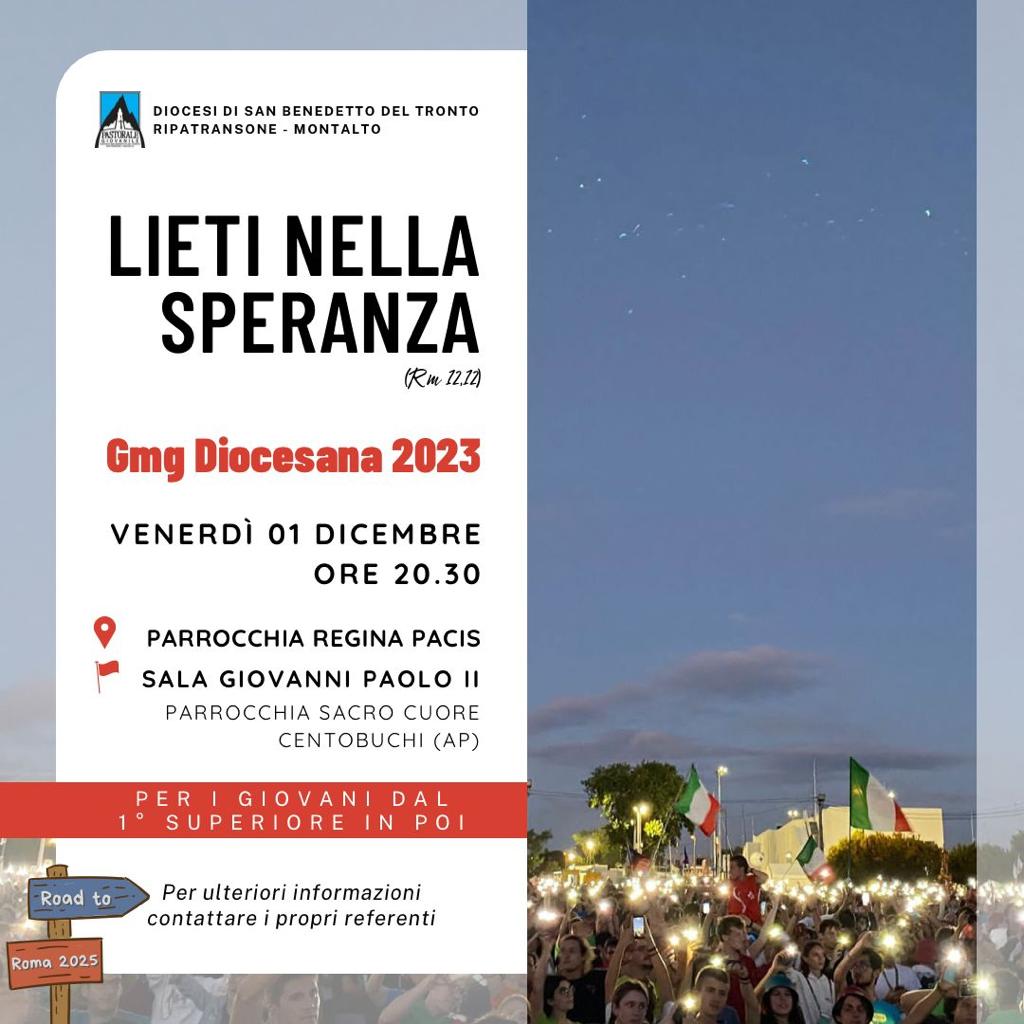 DIOCESI – “Lieti nella Speranza”. Anche i giovani della diocesi di San Benedetto del Tronto – Ripatransone – Montalto si preparano a vivere la Gmg diocesana, che si terrà a Monteprandone domani, 1 dicembre, presso la sala Giovanni Paolo II della Parrocchia Regina Pacis, secondo il tema annuale scelto da papa Francesco.