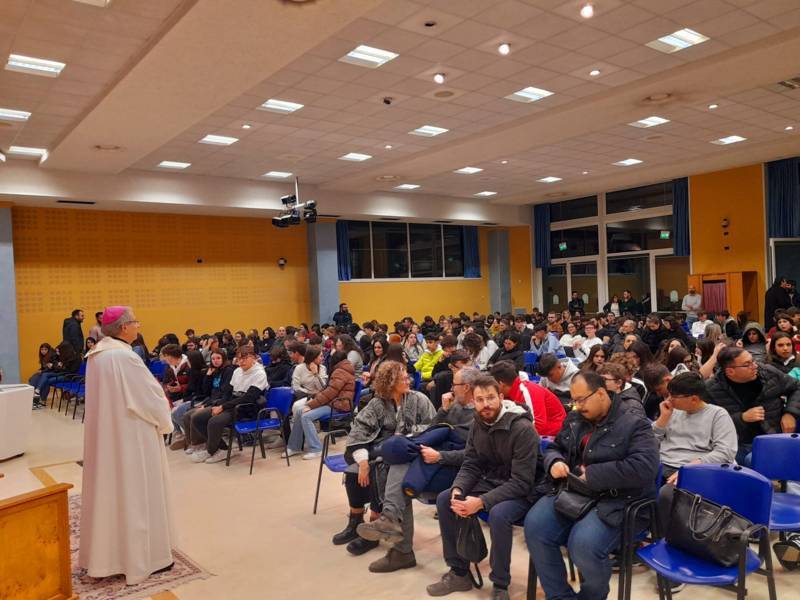 Un cammino che si è concluso presso il salone Giovanni Paolo II della chiesa Sacro Cuore dove ad attendere i giovani pellegrini c’era il vescovo Carlo Bresciani, il quale, visibilmente felice di vedere la folla di giovani invadere l’ampio locale, ha detto: “Eravate aspettati tutti dal Signore!”.