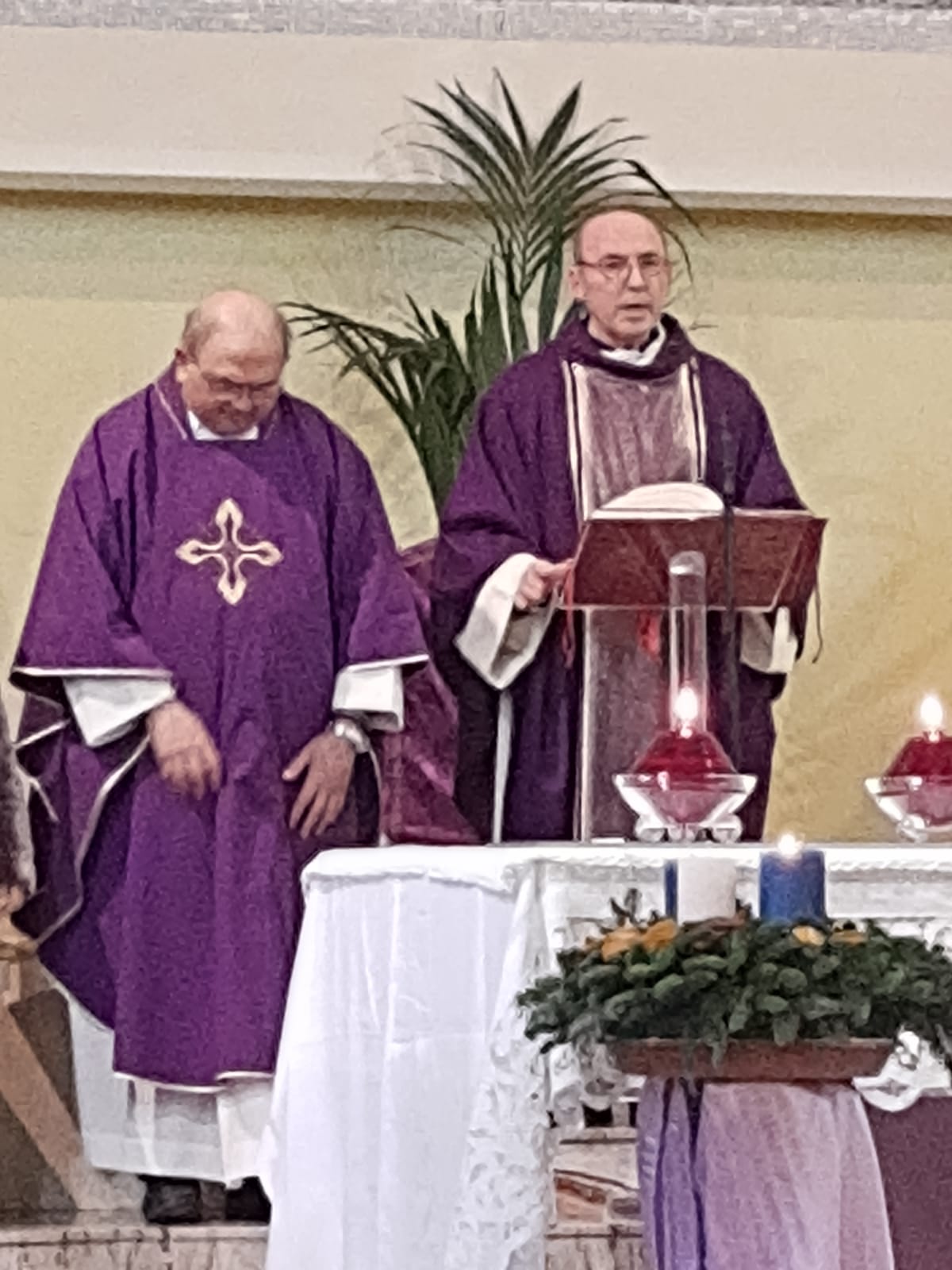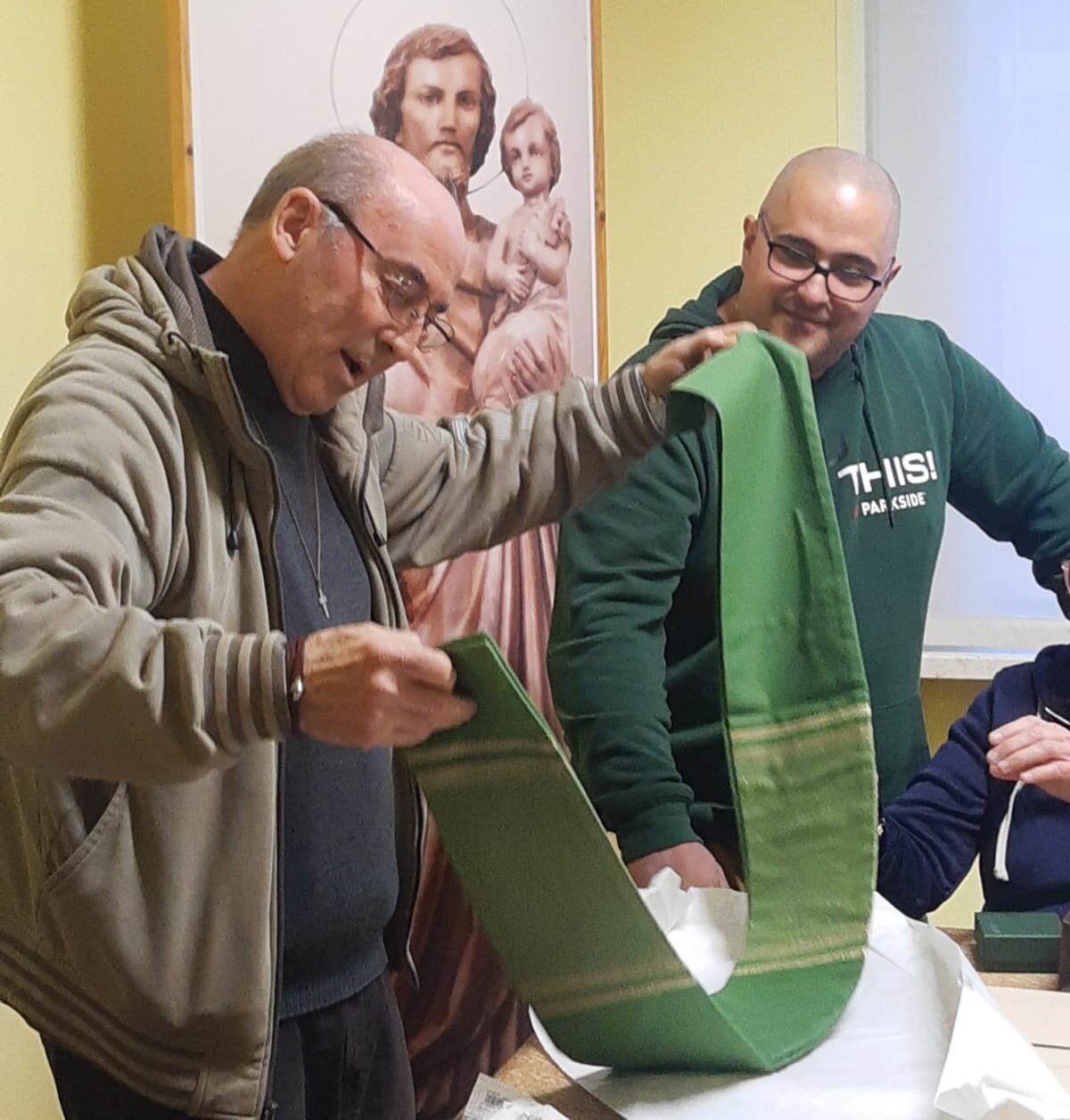 Nel primo, del 2 dicembre 2023, padre Silvano ha ricevuta la visita di una rappresentanza di parrocchiani nel refettorio dell’Istituto, che hanno voluto omaggiarlo con alcuni regali, tra cui una preziosa stola ricamata dalle monache Clarisse.