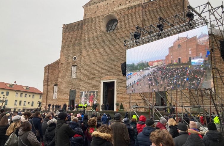 È un passaggio dell’omelia di mons. Claudio Cipolla, vescovo di Padova, al funerale di Giulia Cecchettin, ieri mattina nella basilica di Santa Giustina. Di qui alcune invocazioni di pace: “Ti preghiamo, Signore, di farci il dono della Pace. È nella pace che i popoli progrediscono in cultura e civiltà, in solidarietà e umanità; è nella pace che le risorse vengono indirizzate per acquisire strumenti che nobilitano la vita delle persone, soprattutto delle più deboli e fragili e scompaiono le disuguaglianze sociali”. “Insegnaci, Signore, la pace tra generi, tra maschio e femmina, tra uomo e donna. Vogliamo imparare l’amore e vivere nel rispetto reciproco, cercando anzi il bene dell’altro nel dono di noi stessi – afferma il presule -. Non possiamo più consentire atti di sopraffazione e di abuso; per questo abbiamo bisogno di concorrere per riuscire a trasformare quella cultura che li rende possibili”.