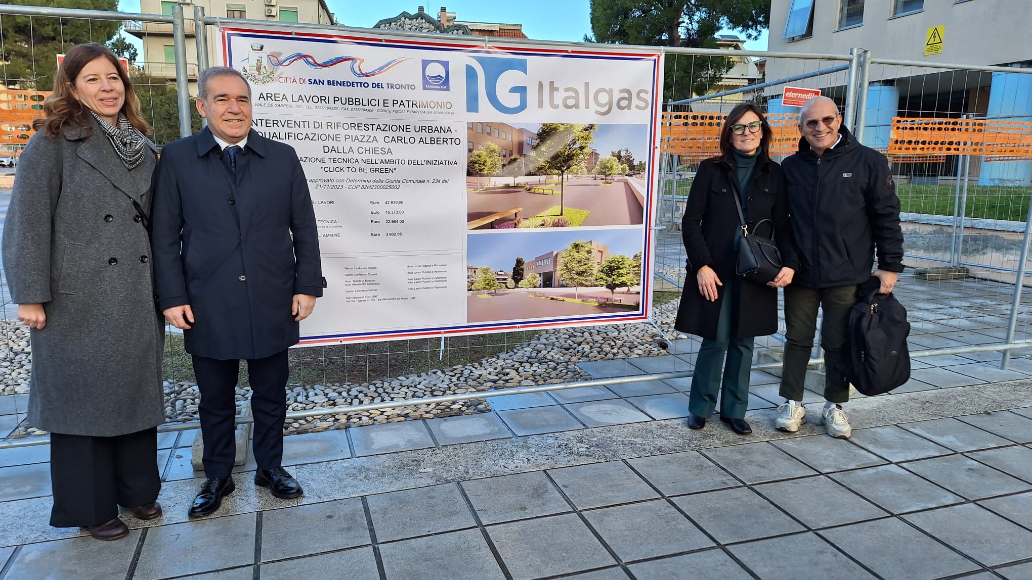 SAN BENEDETTO DEL TRONTO – Con una conferenza stampa svoltasi in prossimità del cantiere appena aperto, alla presenza di due classi della prospiciente scuola “Mario Curzi”, Comune di San Benedetto del Tronto e Italgas hanno dato il via ai lavori di forestazione urbana di piazza Carlo Alberto Dalla Chiesa. Il progetto di rifacimento dell’area è il risultato dell’iniziativa “Click To Be Green” di Italgas che “traduce” in benefici per l’ambiente l’impiego dei servizi digitali.