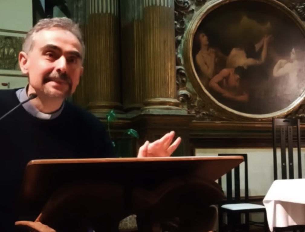 Dopo aver invocato lo Spirito Santo, don Buono ha iniziato il suo intervento ricordando le tre parole che Gesù dice a Santa Margherita Maria Alacoque, quando le appare con il Suo Sacro Cuore: “Le tre parole fondamentali che ci fanno comprendere che di fronte a Lui non si sta fermi, che l’adorazione eucaristica non è staticità, bensì è il venire di Dio a noi: entra, guarda e ripara“. In particolare sul primo verbo, don Buono ha detto: “Entra è una parola fondamentale, perché non è scontato che noi nell’Eucaristia entriamo. Un conto è stare alla Messa e un conto è entrare nella Messa. Sono due cose molto diverse. Che cosa cambia? Il cuore. Cambia il centro. Spesso infatti i pensieri si affollano, noi ci fermiamo, ma la nostra mente non si ferma e la nostra vita è travolta, quindi rischiamo di fare, anche di fronte a Colui, che invece è qui davanti a noi perché vuole fare Lui. L’adorazione non la facciamo noi, la fa il Signore; non è opera nostra, ma è opera Sua in noi. Non è un caso che, quando facciamo il segno della croce, utilizziamo la preposizione ‘nel’, diciamo ‘nel nome del Padre, del Figlio e dello Spirito Santo’, perché, se fatto con il cuore, è il segno che ci fa entrare nel cuore di Dio. Per entrare, però, dobbiamo essere strappati dai nostri padroni, dalle nostre ansie, paure. Il segno di croce – dicono molti – è il più grande esorcismo, perché ci strappa dal potere del demonio e ci fa entrare alla presenza del Signore“.