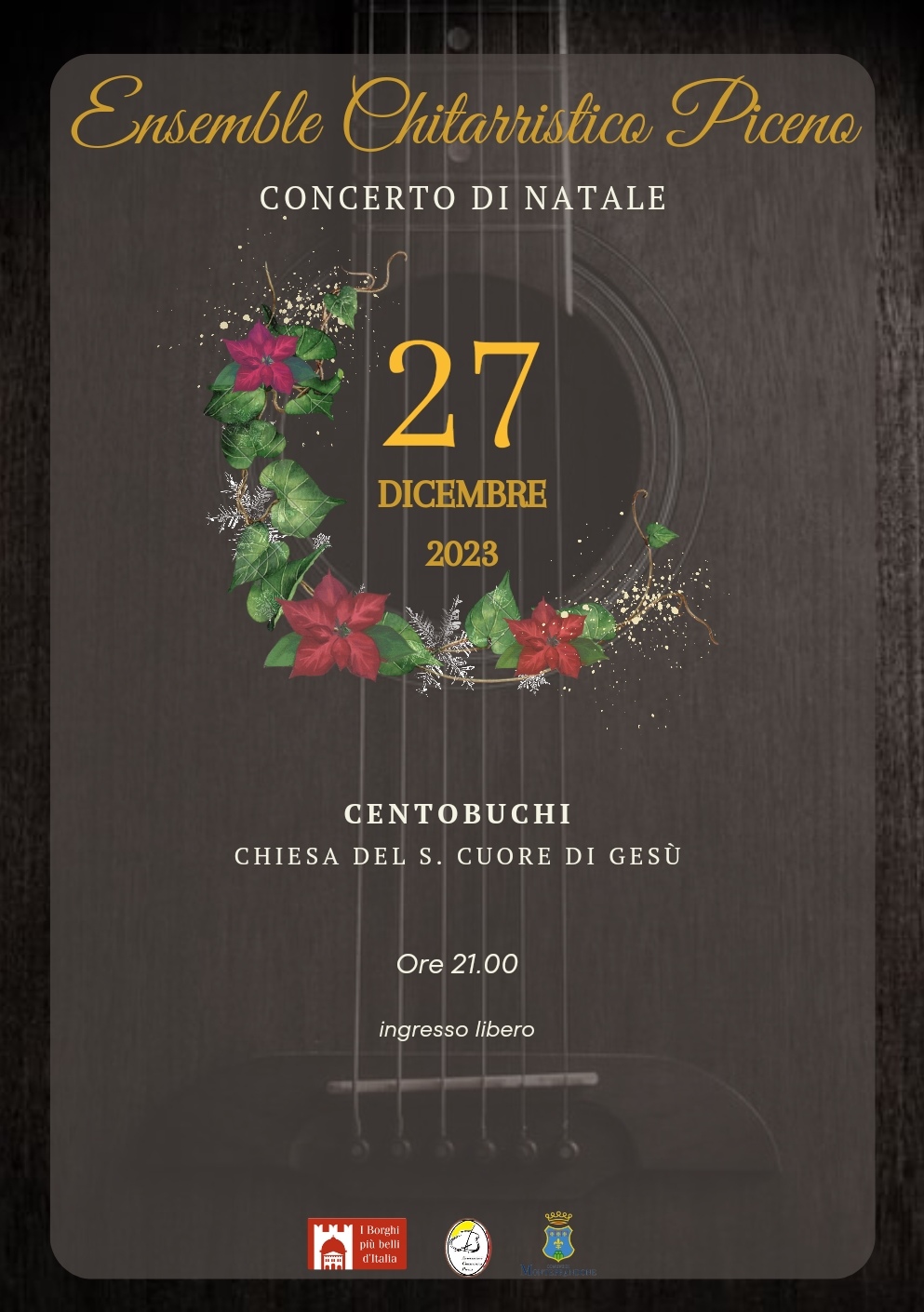 MONTEPRANDONE – L’Associazione Chitarristica Picena, con il patrocinio del Comune di Monteprandone, organizza il Concerto di Natale dell’Ensemble Chitarristico Piceno. Lo spettacolo musicale si terrà mercoledì 27 dicembre, alle ore 21:00, presso la chiesa del Sacro Cuore di Gesù di Centobuchi.
