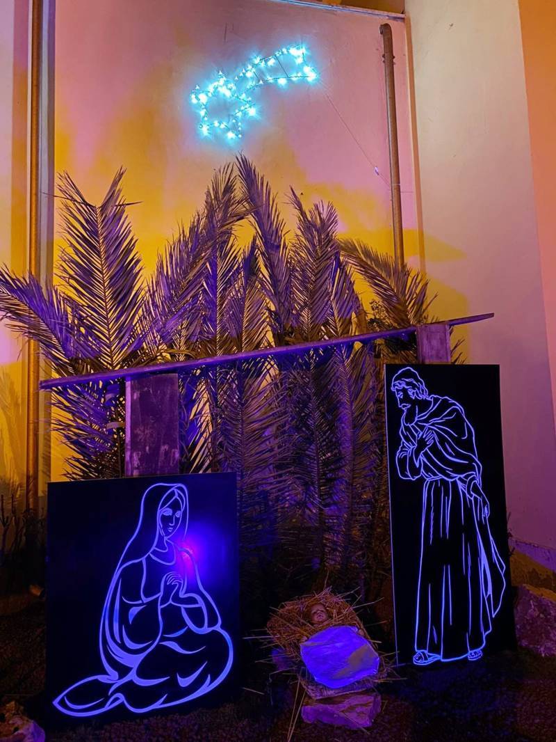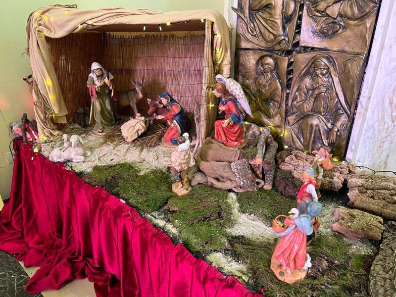 Iniziamo dunque il nostro viaggio alla scoperta dei presepi della Diocesi di San Benedetto del Tronto – Ripatransone – Montalto partendo da quelli realizzati nella Vicaria di San Giacomo della Marca il cui Vicario Foraneo, don Anselmo Fulgenzi, dichiara: “In occasione del Natale 2023, come lo scorso anno, sul porticato della Chiesa del Sacro Cuore di Martinsicuro, campeggia una riproduzione della Natività del Caravaggio.