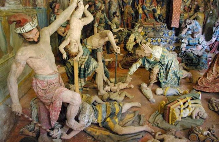 È quanto leggiamo nel Vangelo di Matteo, oggi, festa dei Santi Innocenti Martiri. Tutti noi, fin da bambini, siamo stati colpiti da questa pagina evangelica, la “strage degli innocenti”. Dipinti, opere d’arte ne hanno reso ancora più forte l’impatto emotivo. Al Sacro Monte a Varallo Sesia (Vc), la cappella che evoca questa scena è una delle più famose, (sec. XVI), e gli studiosi fanno notare come i personaggi sono raffigurati non tanto con abiti dell’epoca di Cristo quanto piuttosto come uomini e donne del ‘500. Quindi già allora si voleva far accostare il visitatore non a qualcosa che è relegato nel passato, ma a qualcosa che sta avvenendo.