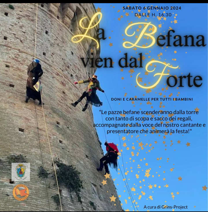 – sabato 6 gennaio alle ore 16:30 le “Befane” scenderanno dal Mastio della Fortezza con tanto di scopa e sacco dei regali.