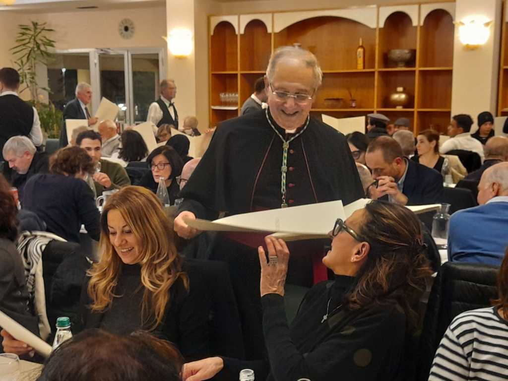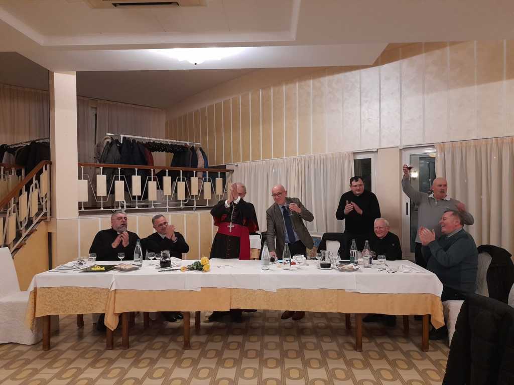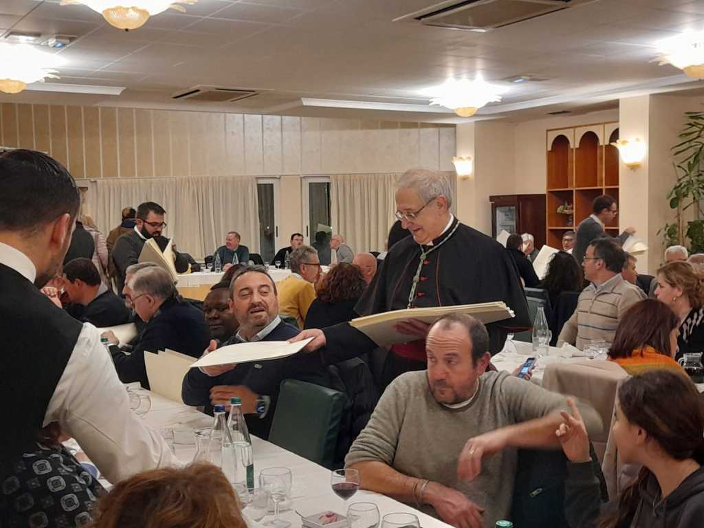 SAN BENEDETTO DEL TRONTO – Tanti commensali hanno festeggiato con Mons. Carlo Bresciani, Vescovo della Diocesi di San Benedetto del Tronto – Ripatransone – Montalto, il suo decimo anniversario di ordinazione episcopale, giovedì 11 gennaio 2023, dalle ore 21:00 in poi, presso la sala ristorante dell’Hotel Calabresi in San Benedetto del Tronto. Numerosi i Sacerdoti e i Diaconi della Diocesi presenti, insieme ai Seminaristi e agli Aspiranti al Diaconato. Tantissimi anche i collaboratori diocesani e i fedeli accorsi dalle varie Parrocchie del territorio, comprese alcune autorità civili, che si sono riuniti per festeggiare insieme al Vescovo Bresciani questo importante anniversario. Particolarmente significativa è stata la presenza di alcuni ospiti e volontari della Caritas Diocesana.